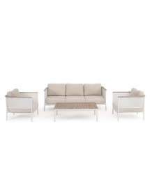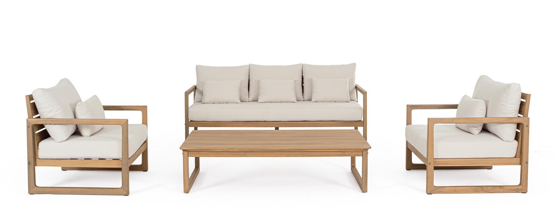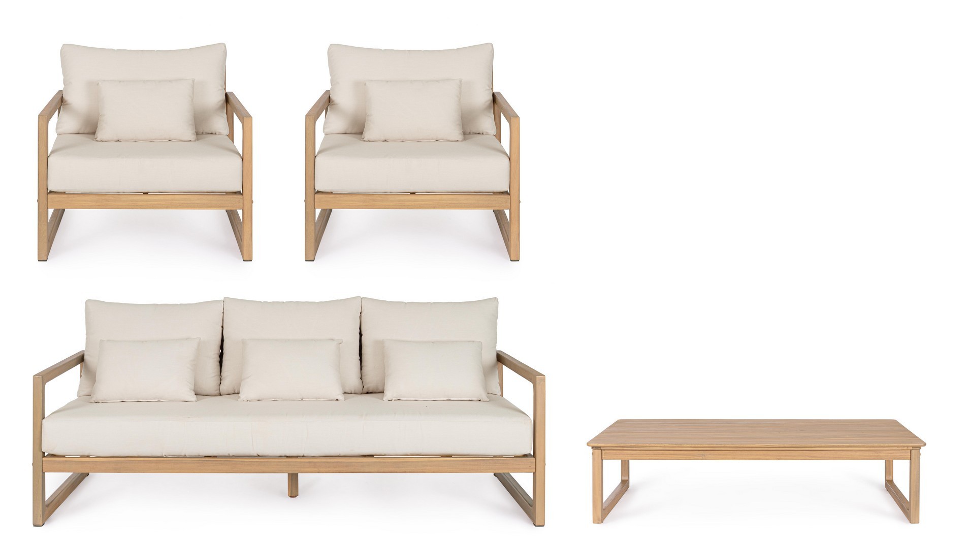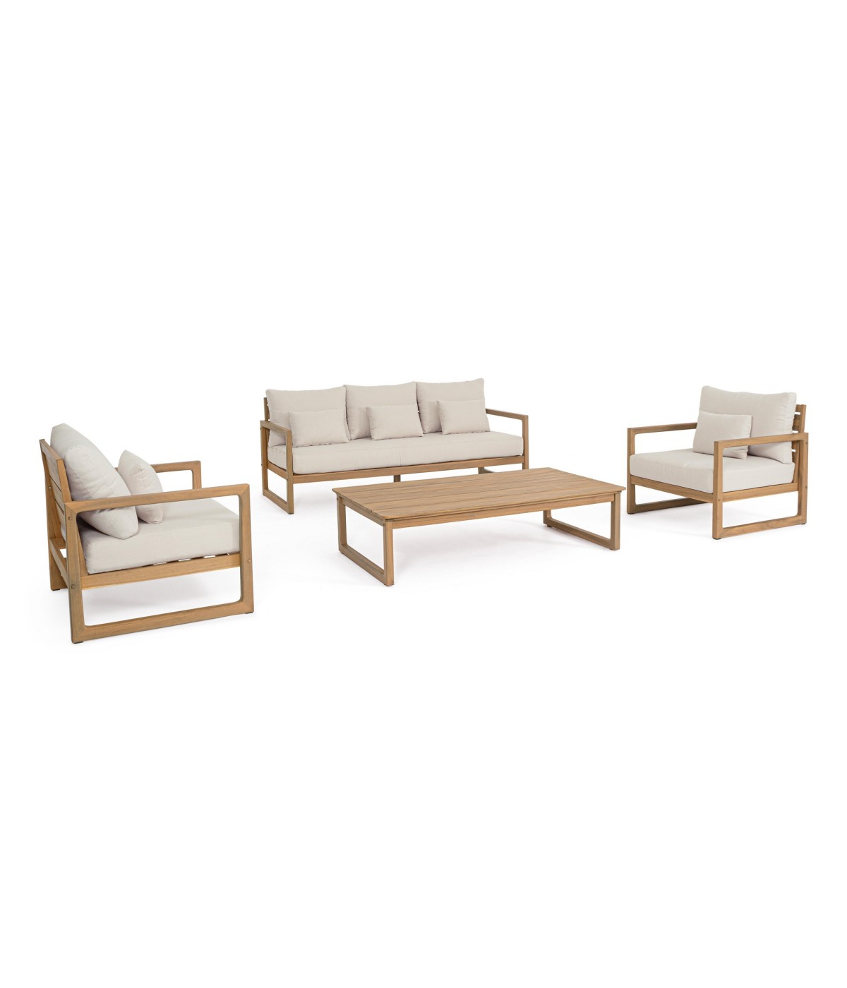 LEGNO DI ACACIA FSC 100%, FINITURA A OLIO (EFFETTO TEAK). CUSCINI SFODERABILI IN TESSUTO IDROREPELLENTE SPUNPOLY 230GR/M2. TAVOLINO PROVVISTO DI PIEDINI REGOLABILI. VITERIA IN ACCIAIO INOSSIDABILE. DA ASSEMBLARE.