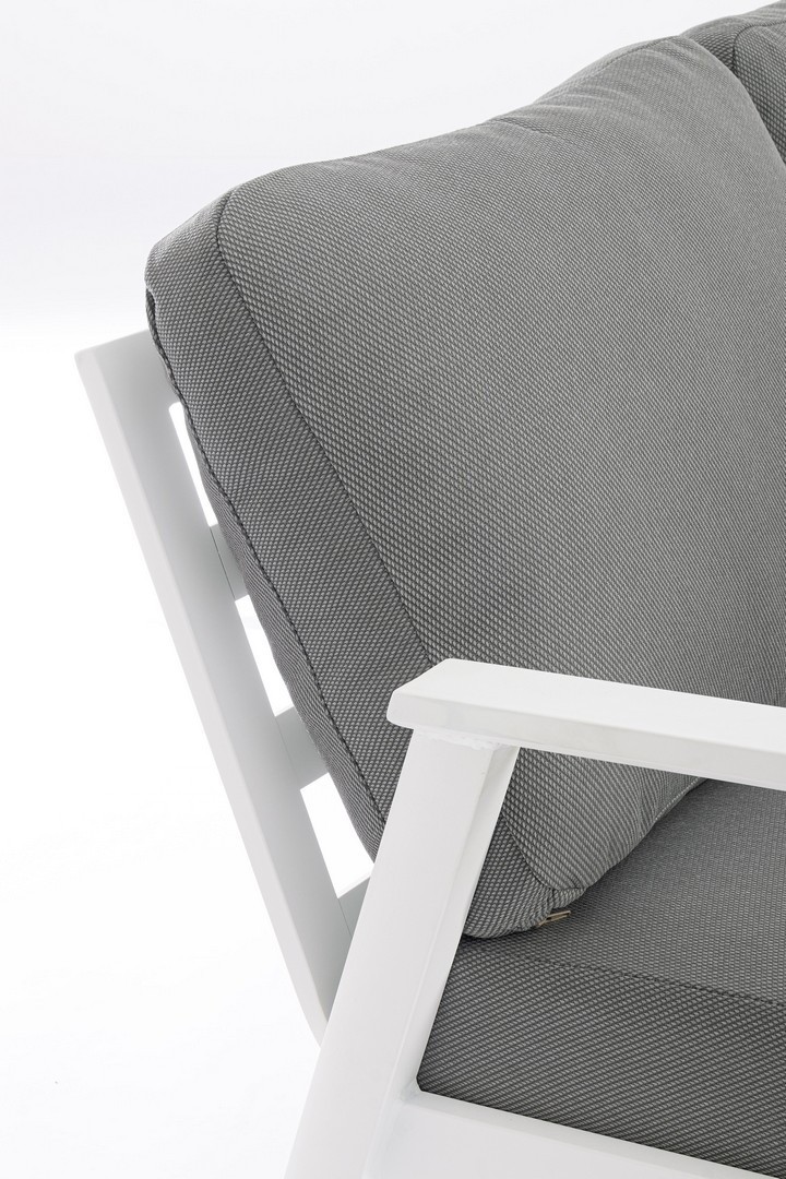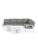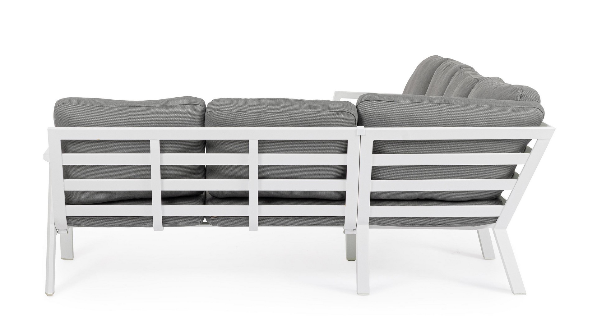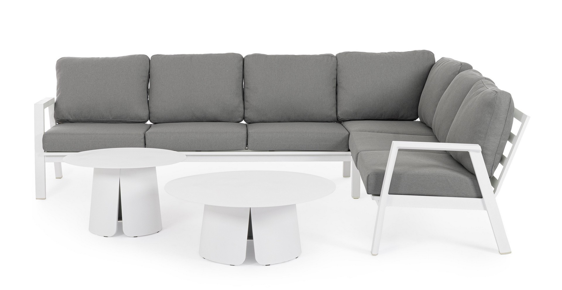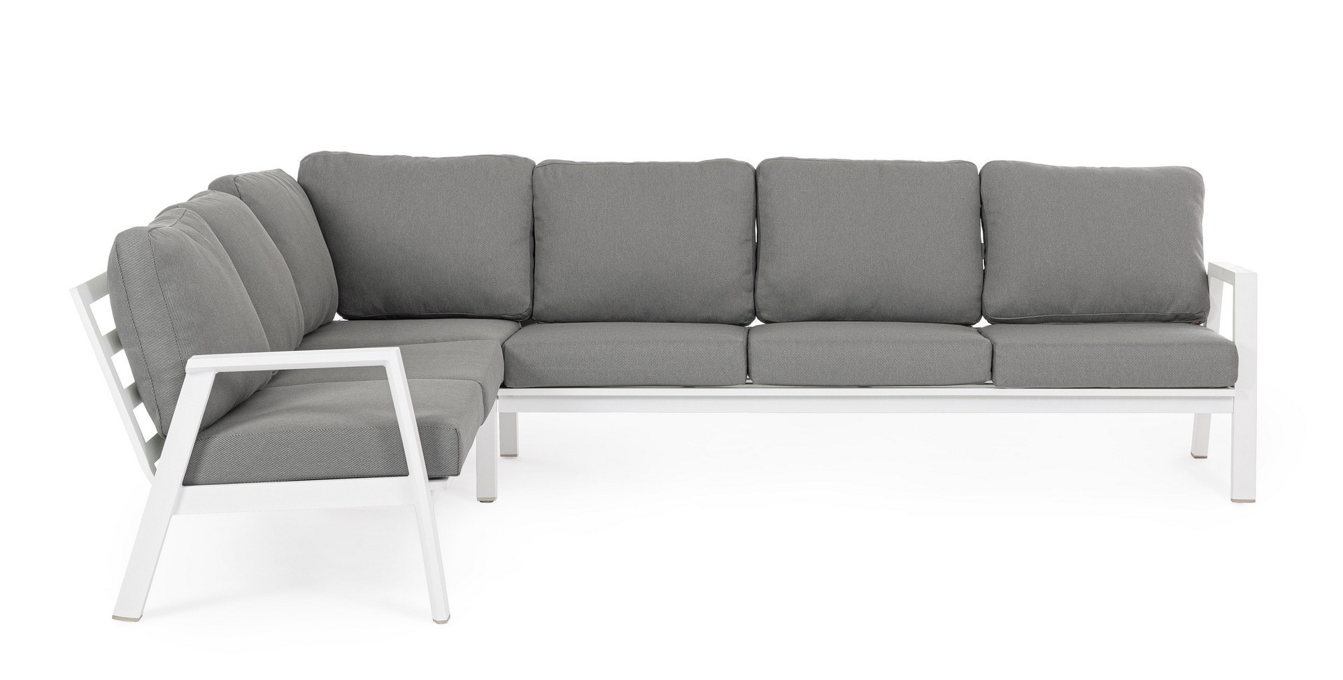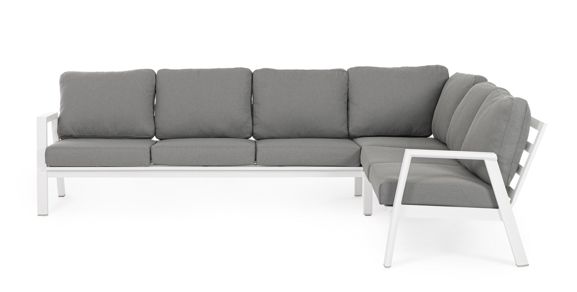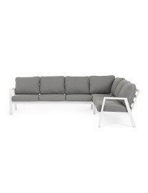 STRUTTURA IN ALLUMINIO VERNICIATA A POLVERE (POLIESTERE). CUSCINI SFODERABILI CON TESSUTO IDROREPELLENTE OLEFIN (100% POLIPROPILENE). IL DIVANO 2P E 3P SONO INTERSCAMBIABILI, POSSONO ESSERE POSIZIONATI SIA A DESTRA CHE A SINISTRA DELL'ANGOLARE. VITERIA IN ACCIAIO INOSSIDABILIE. PIEDINI REGOLABILI. LATERALI DA ASSEMBLARE.