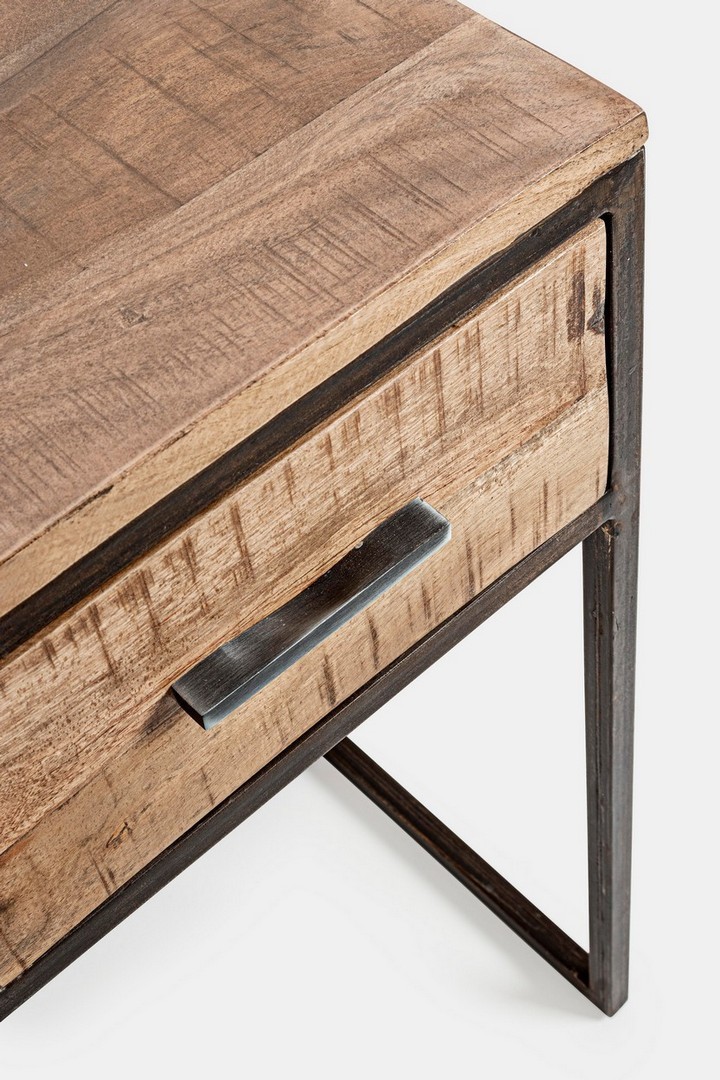 STRUTTURA IN LEGNO D'ACACIA E ACCIAIO VERNICIATO A POLVERE EPOSSIDICA. FINITURA ACRILICA PROTETTIVA.