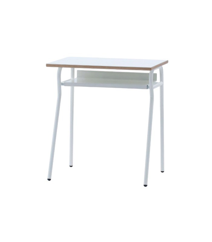 Banco scuola dal design industrial ideale per un'arredamento moderno, offrendo un' ampio piano di appoggio e un vano per riporre articoli come quaderni, penne e raccoglitori. Adatto per la zona notte come scrivania per la cameretta dei bambini , si presta anche per l'arredamento contract per enti pubblici.