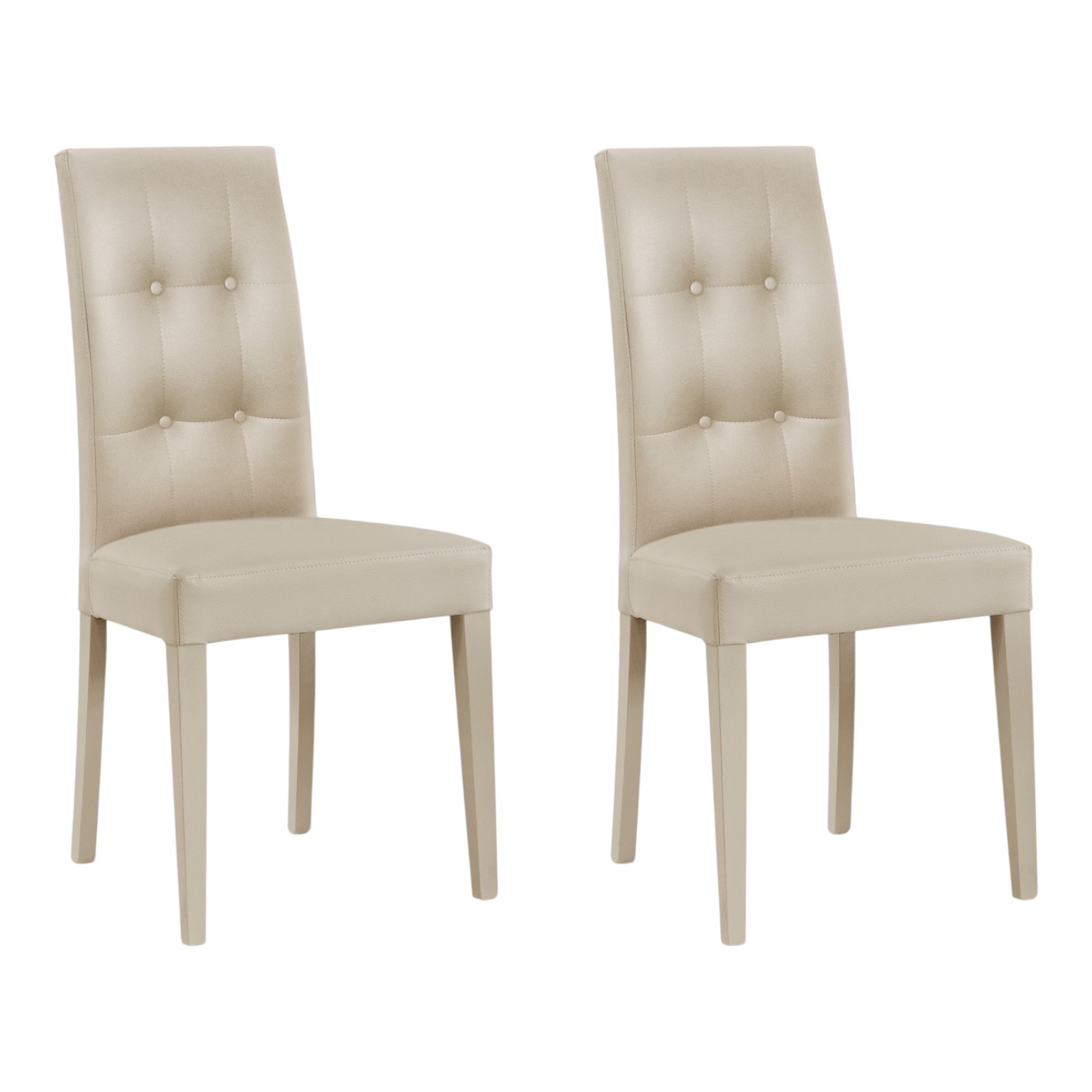 SET 2 SEDIE MODERNE LEGNO ECOPELLE IMBOTTITA BEIGE CON BOTTONI (901)