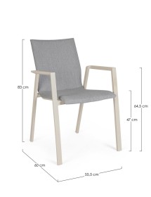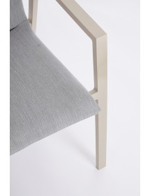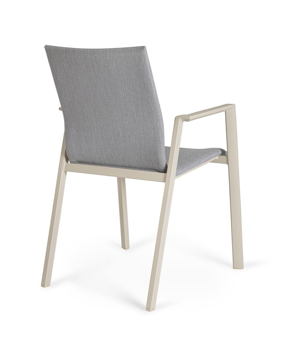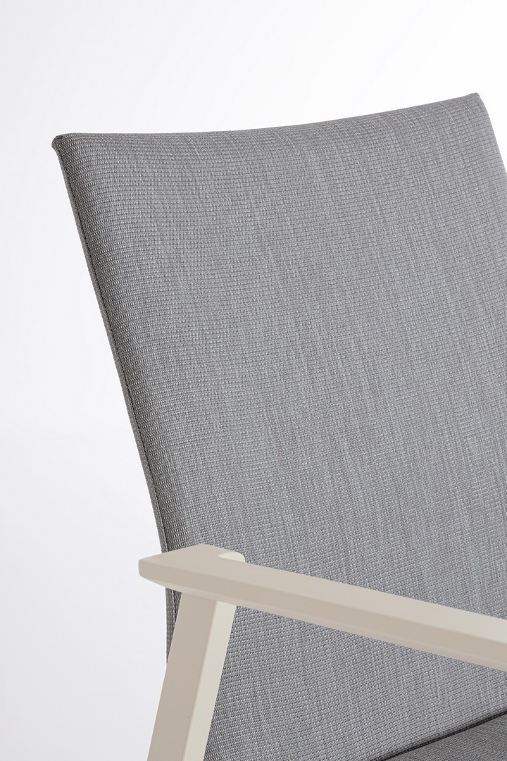 STRUTTURA IN ALLUMINIO VERNICIATA A POLVERE (POLIESTERE). RIVESTIMENTO CON TESSUTO IDROREPELLENTE MISTO (70% TEXTILENE, 30% OLEFIN). IMBOTTITURA PER ESTERNO FAST DRY FOAM. IMPILABILE. IMBALLO SENZA CARTONE.