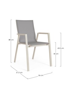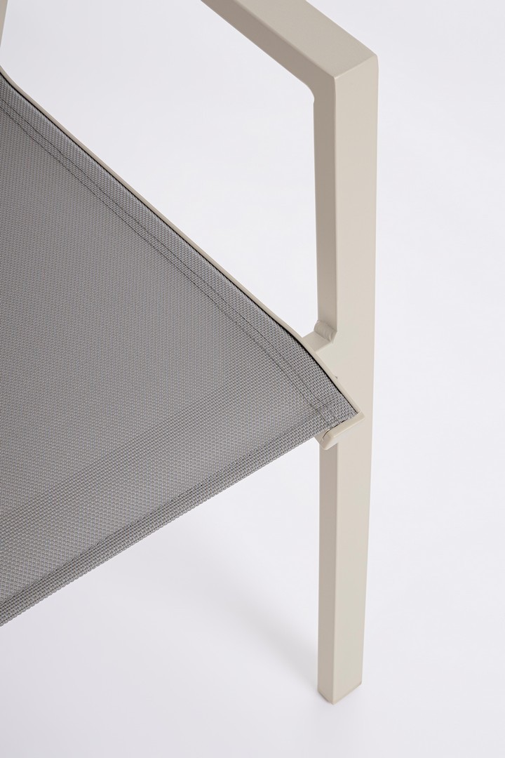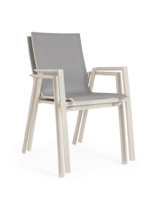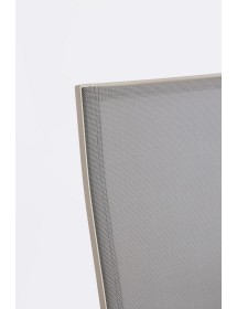 STRUTTURA IN ALLUMINIO VERNICIATA A POLVERE (POLIESTERE). RIVESTIMENTO IN TEXTILENE 1X1. IMPILABILE. IMBALLO SENZA CARTONE.