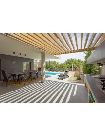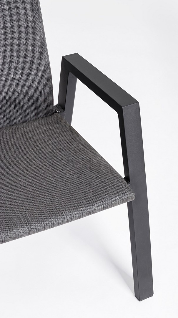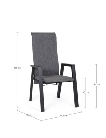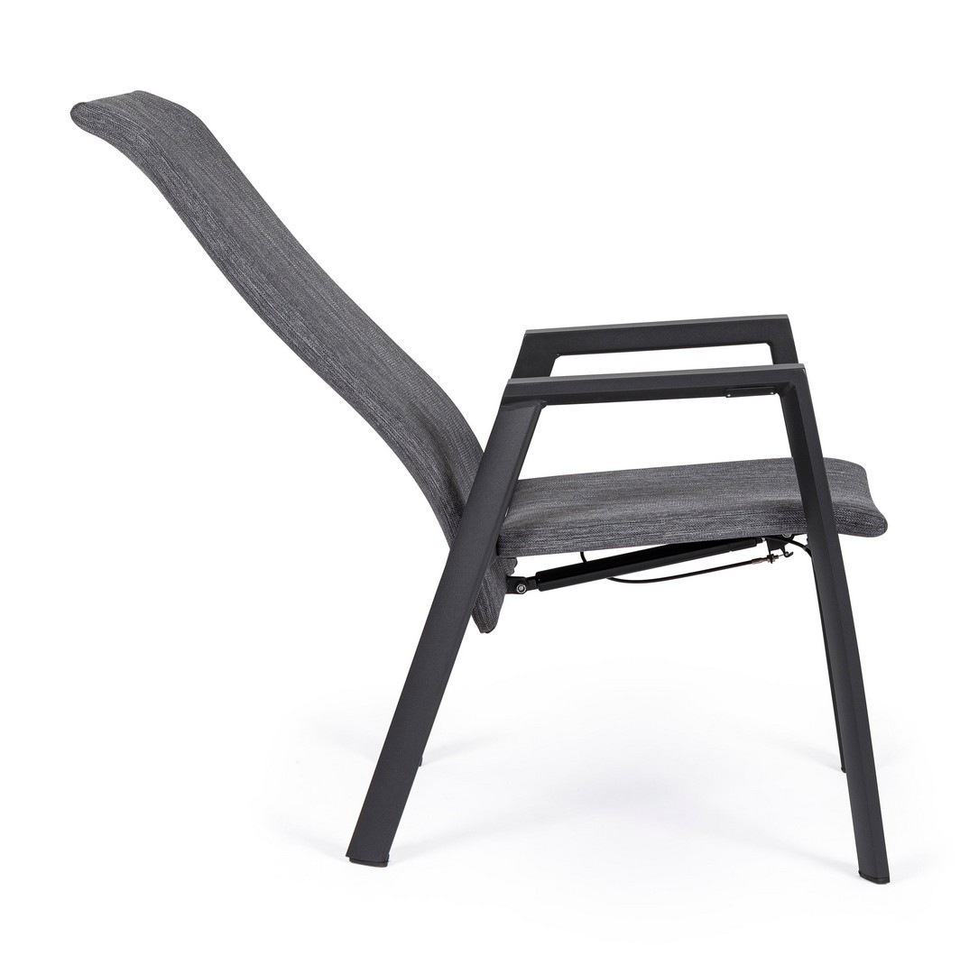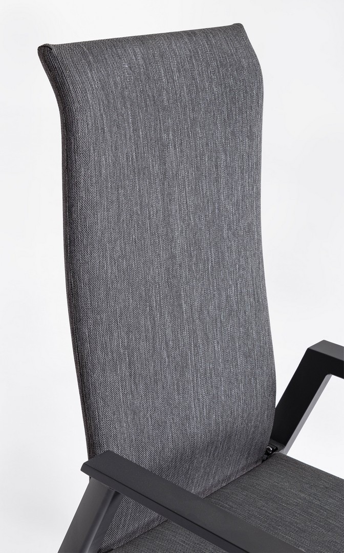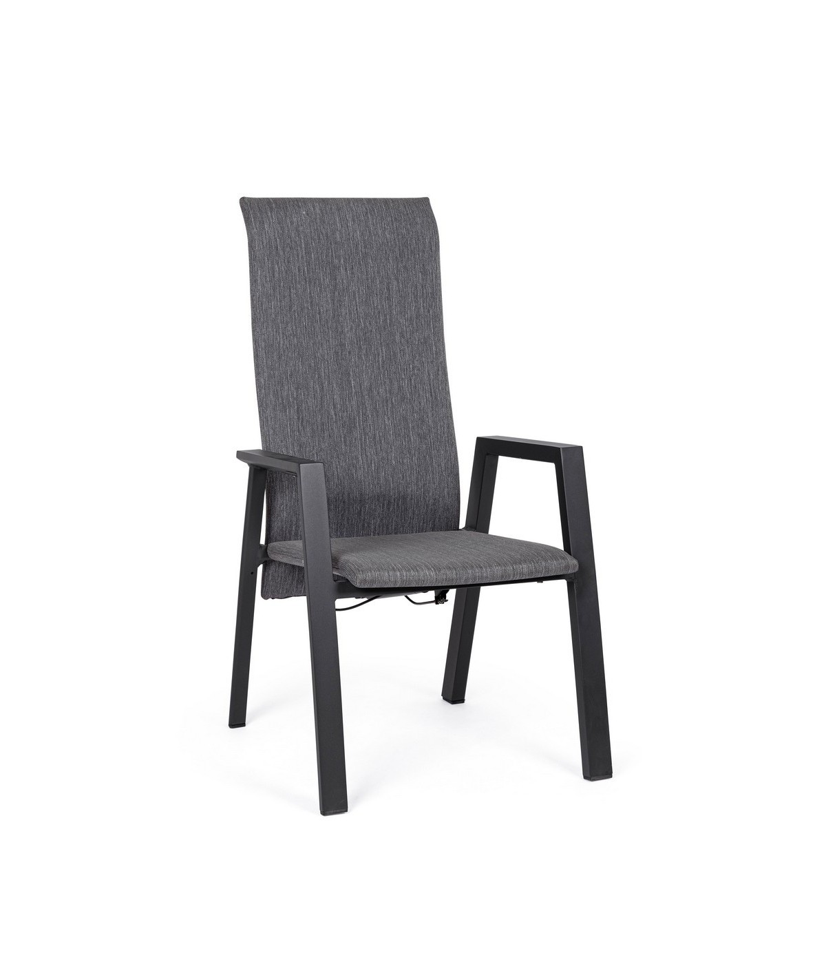 STRUTTURA IN ALLUMINIO VERNICIATA A POLVERE (POLIESTERE). SCHIENALE E SEDUTA RIVESTITI CON TESSUTO IDROREPELLENTE MISTO (70% TEXTILENE E 30% OLEFIN). IMBOTTITURA PER ESTERNO FAST DRY FOAM. SCHIENALE RECLINABILE IN LIBERA POSIZIONE. VITERIA IN ACCIAIO INOSSIDABILE.
