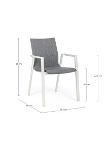 STRUTTURA IN ALLUMINIO VERNICIATA A POLVERE (POLIESTERE). RIVESTIMENTO CON TESSUTO MISTO (70% TEXTILENE E 30% OLEFIN). IMBOTTITURA PER ESTERNO FAST DRY FOAM. IMPILABILE. IMBALLO SENZA CARTONE.