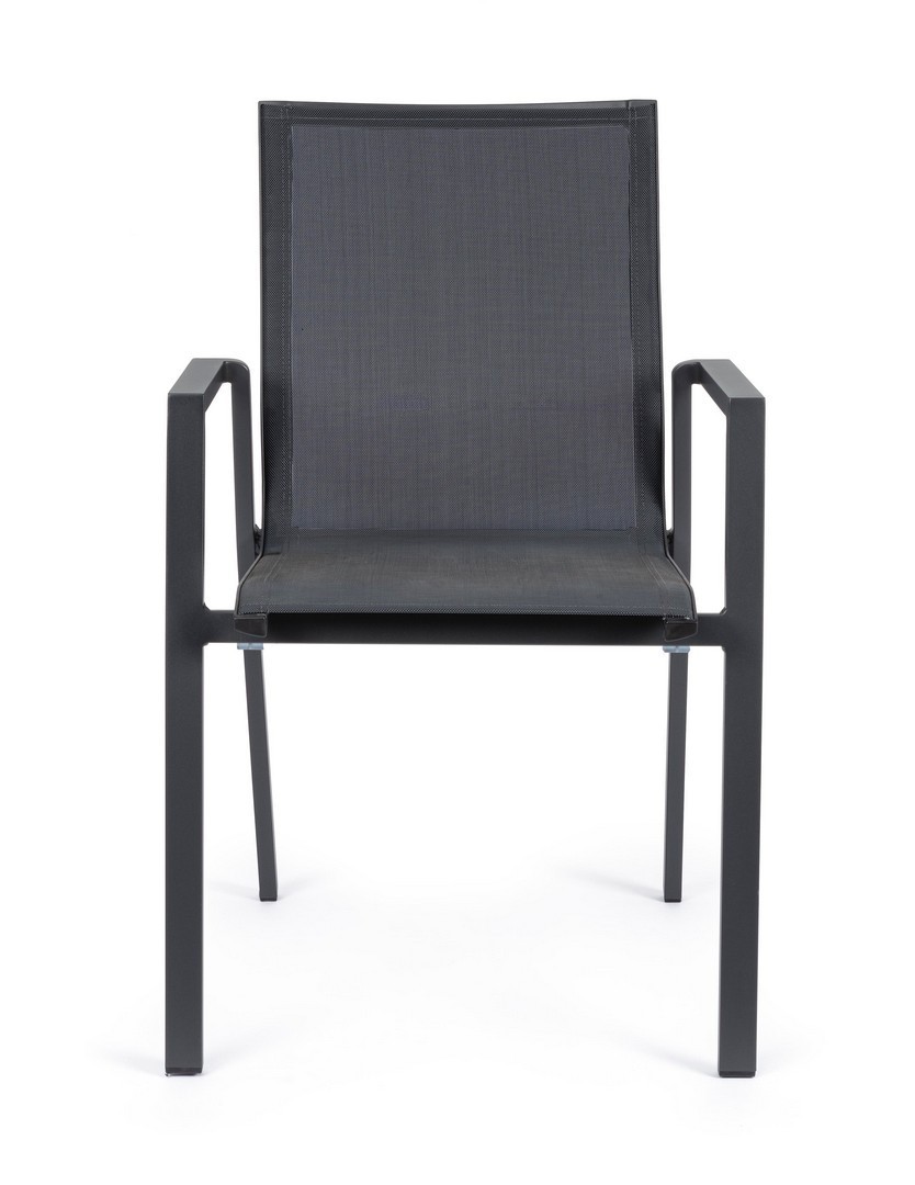 STRUTTURA IN ALLUMINIO VERNICIATA A POLVERE (POLIESTERE). RIVESTIMENTO IN TEXTILENE 1X1. IMPILABILE. IMBALLO SENZA CARTONE.