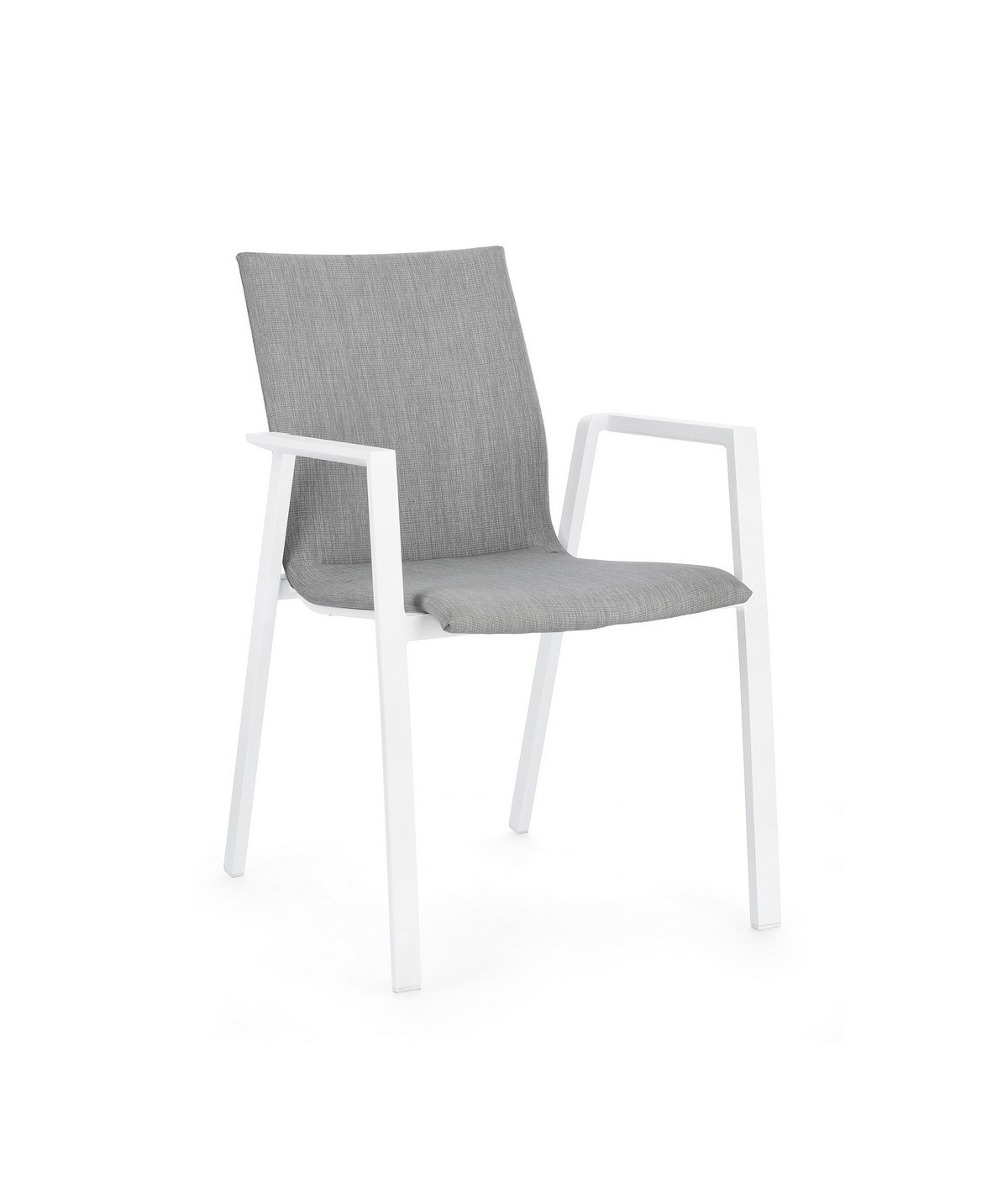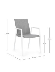STRUTTURA IN ALLUMINIO VERNICIATA A POLVERE (POLIESTERE). RIVESTIMENTO CON TESSUTO MISTO (70% TEXTILENE, 30% OLEFIN). IMBOTTITURA PER ESTERNO FAST DRY FOAM. IMPILABILE. IMBALLO SENZA CARTONE.