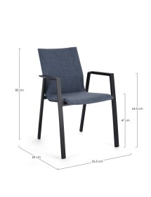 STRUTTURA IN ALLUMINIO VERNICIATA A POLVERE (POLIESTERE). RIVESTIMENTO CON TESSUTO IDROREPELLENTE MISTO (70% TEXTILENE, 30% OLEFIN). IMBOTTITURA PER ESTERNO FAST DRY FOAM. IMPILABILE. IMBALLO SENZA CARTONE.