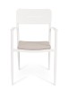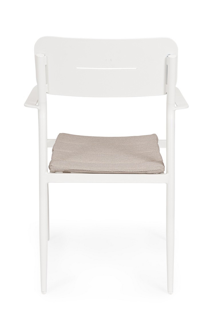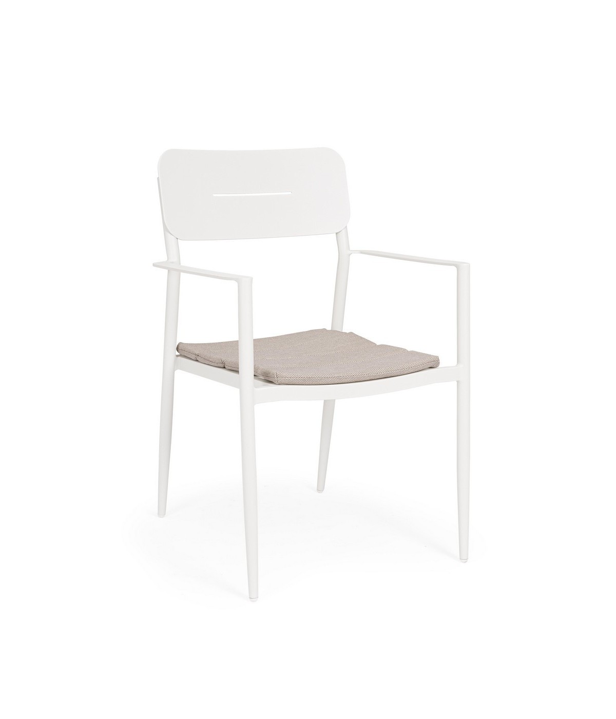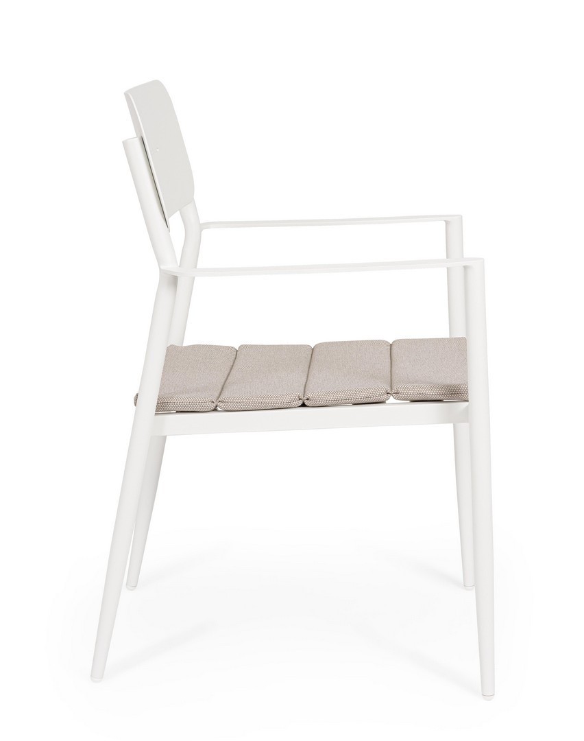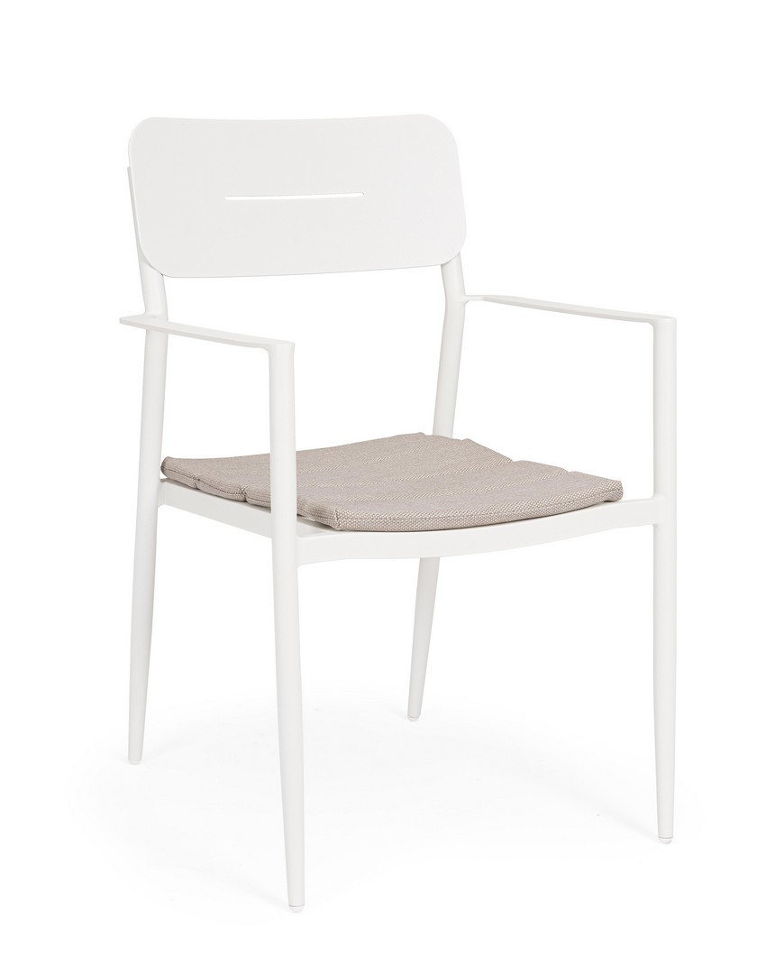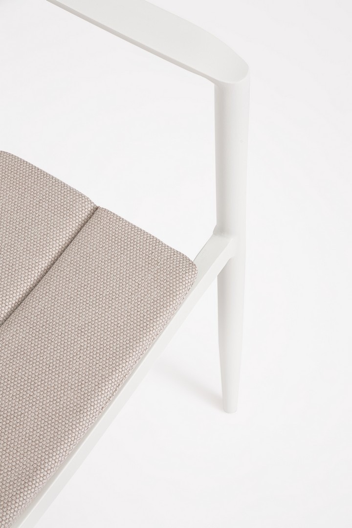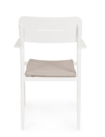 STRUTTURA IN ALLUMINIO VERNICIATO A POLVERE (POLIESTERE). CUSCINO SEDUTA NON SFODERABILE CON TESSUTO IDROREPELLENTE OLEFIN (100% POLIPROPILENE). IMPILABILE. IMBALLO SENZA CARTONE.