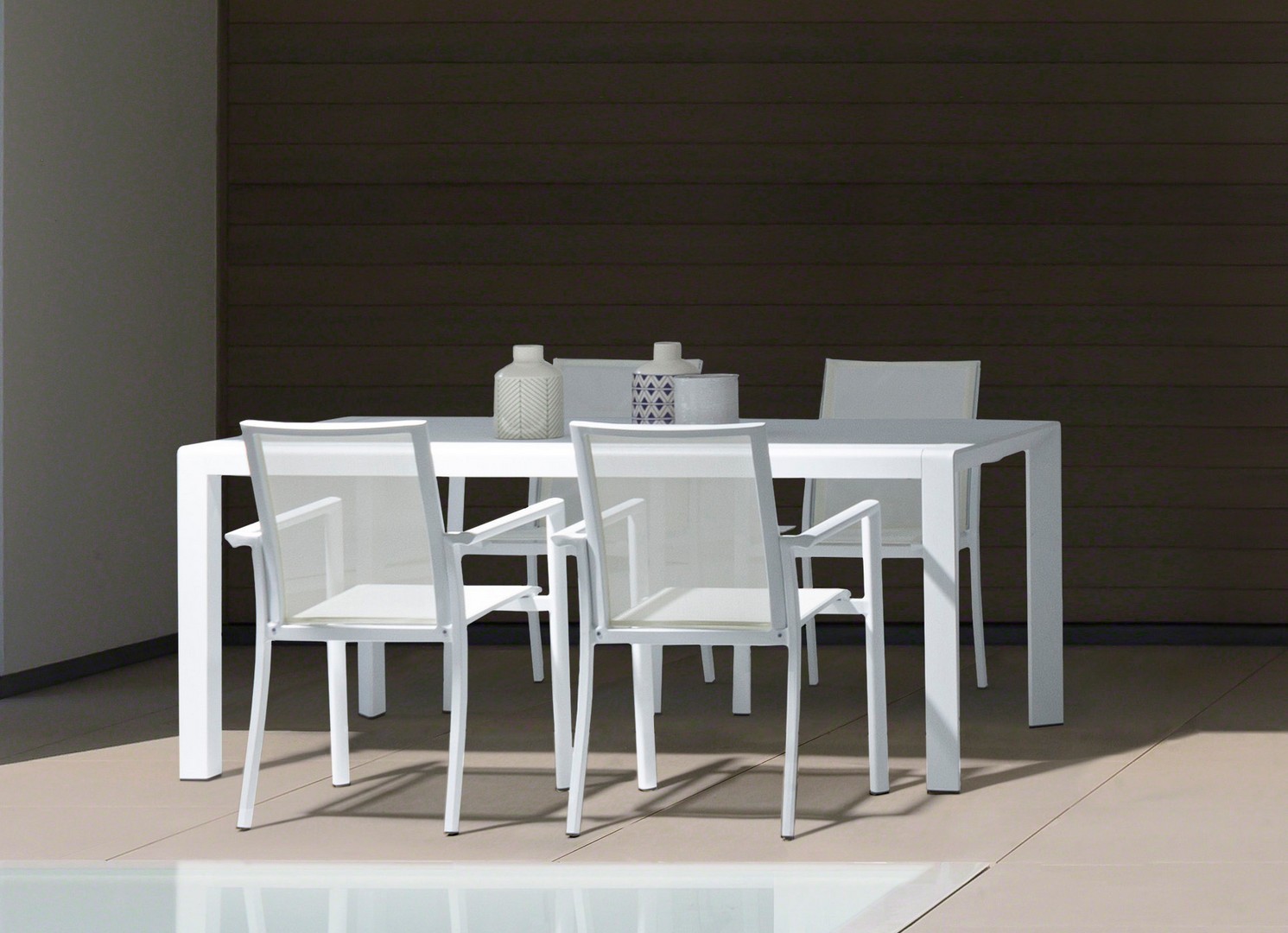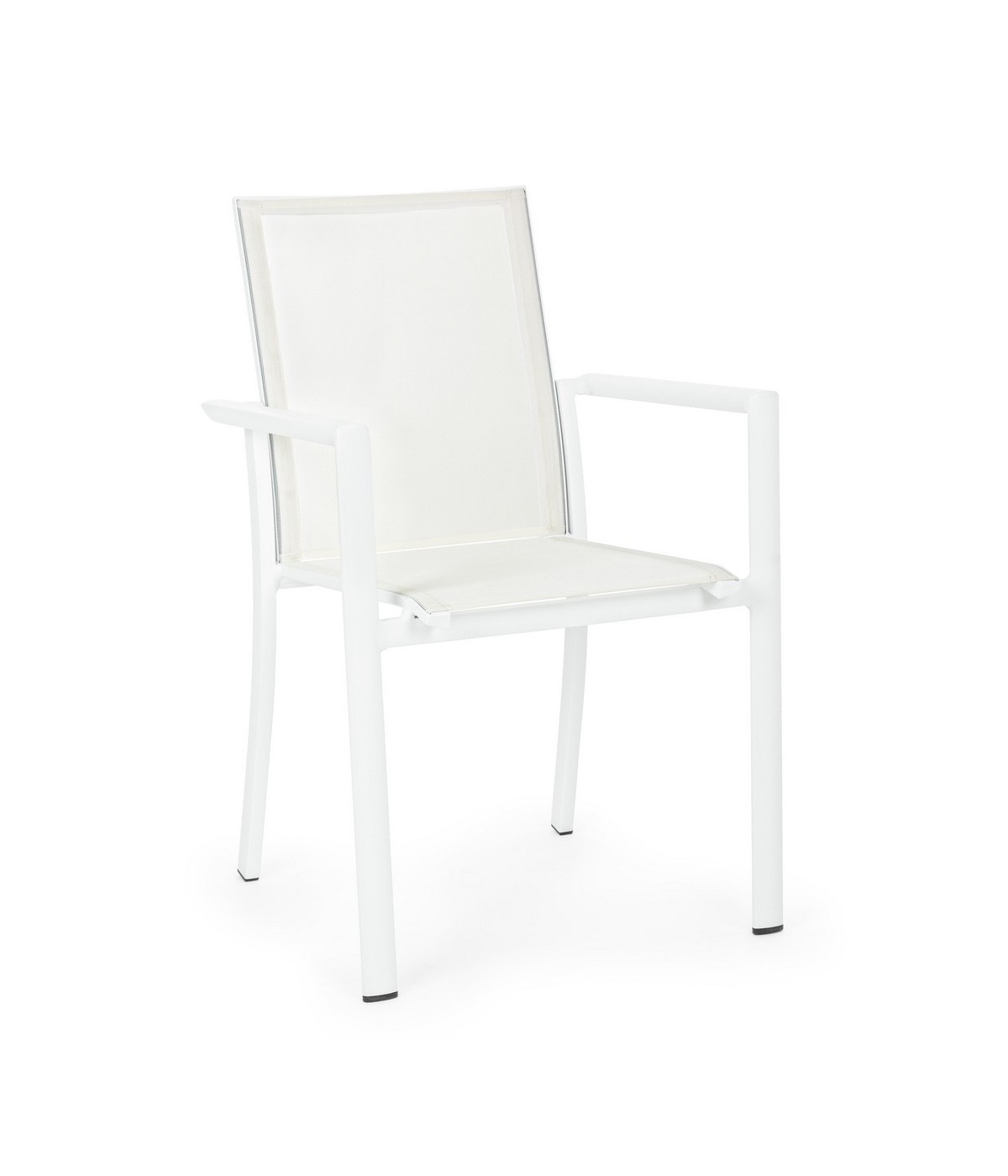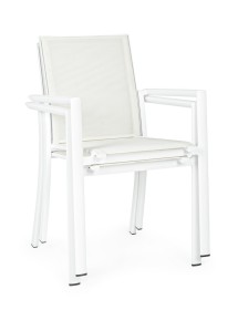 STRUTTURA IN ALLUMINIO, VERNICIATO A POLVERE (POLIESTERE). SEDUTA E SCHIENALE IN TEXTILENE 1X1. IMPILABILE. IMBALLO SENZA CARTONE.