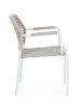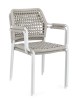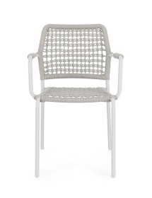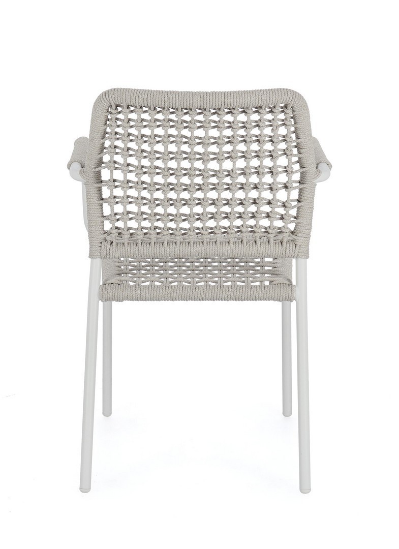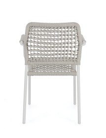 STRUTTURA IN ALLUMINIO VERNICIATA A POLVERE (POLIESTERE). INTRECCIO PER ESTERNO IN CORDA POLIESTERE. IMPILABILE. IMBALLO SENZA CARTONE.