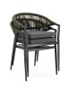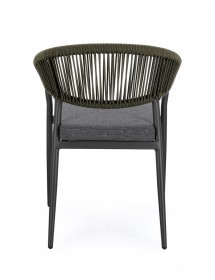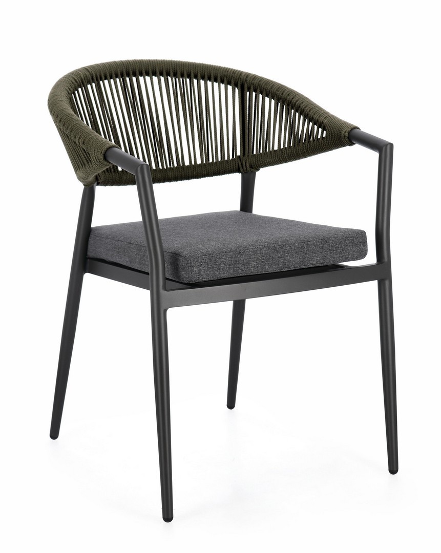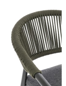 STRUTTURA IN ALLUMINIO VERNICIATA A POLVERE (POLIESTERE). INTRECCIO PER ESTERNO IN CORDA OLEFIN (POLIPROPILENE). CUSCINI SFODERABILI IN TESSUTO IDROREPELLENTE OLEFIN (100% POLIPROPILENE). IMPILABILE.
