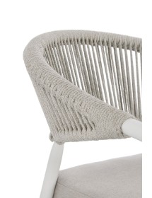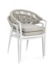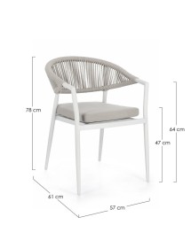 STRUTTURA IN ALLUMINIO VERNICIATA A POLVERE (POLIESTERE). INTRECCIO PER ESTERNO IN CORDA POLIESTERE. CUSCINI SFODERABILI IN TESSUTO IDROREPELLENTE 100% POLIESTERE. IMPILABILE. IMBALLO SENZA CARTONE.