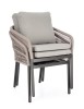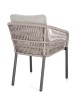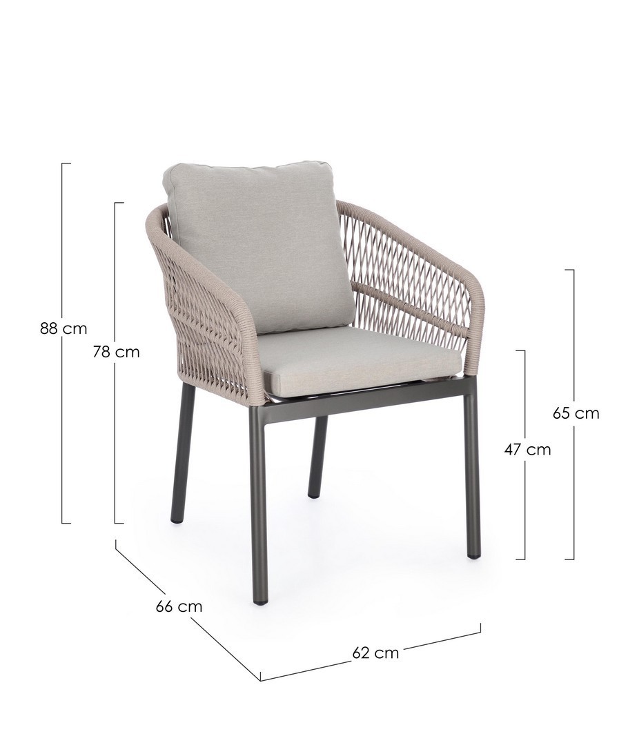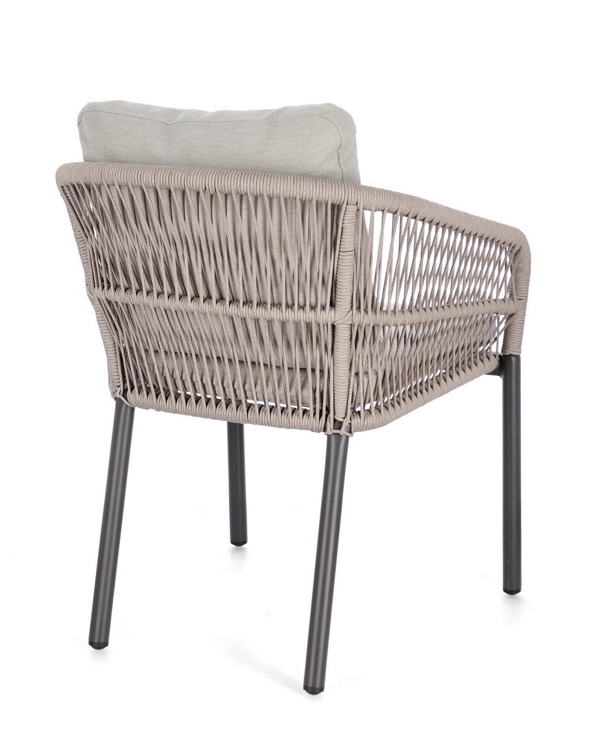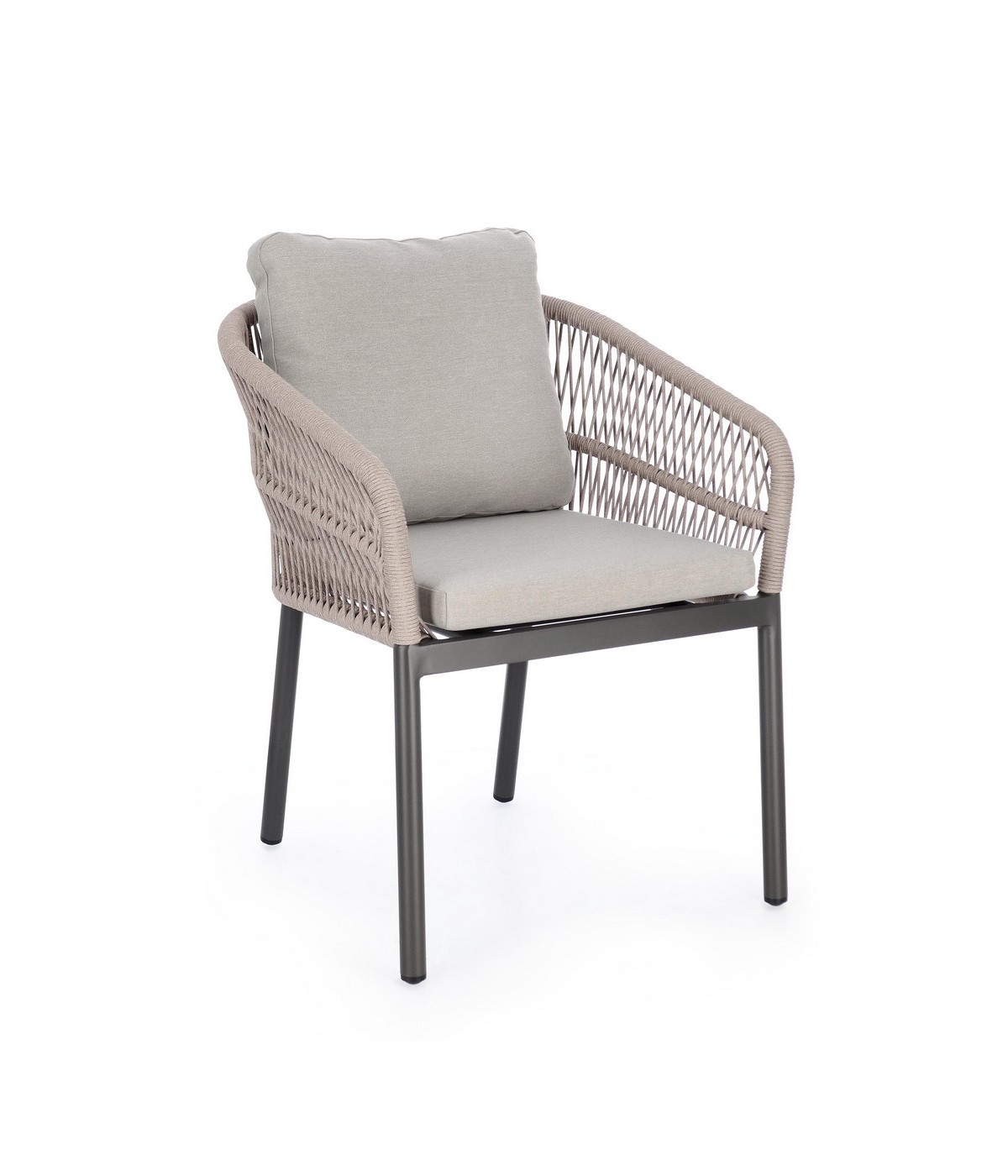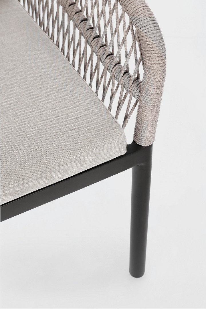 STRUTTURA IN ALLUMINIO VERNICIATA A POLVERE (POLIESTERE). INTRECCIO PER ESTERNO IN CORDA POLIESTERE. CUSCINI SFODERABILI IN TESSUTO IDROREPELLENTE 100% POLIESTERE. IMPILABILE. IMBALLO SENZA CARTONE.
