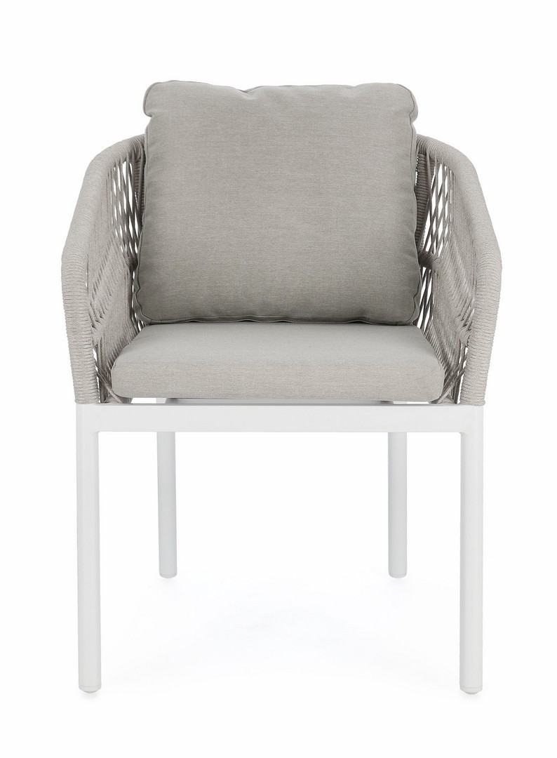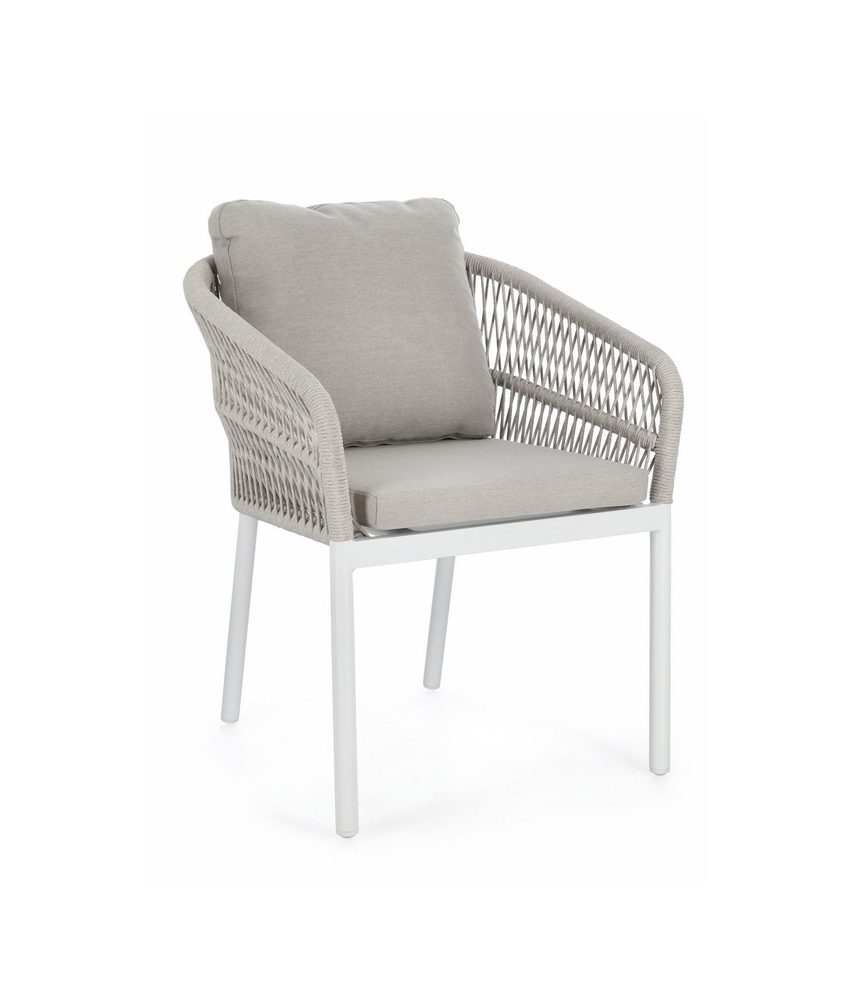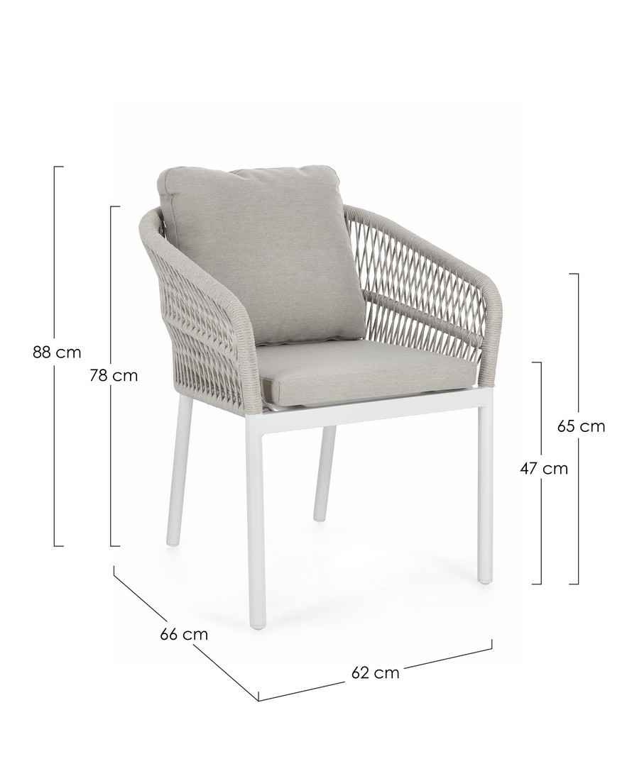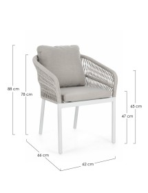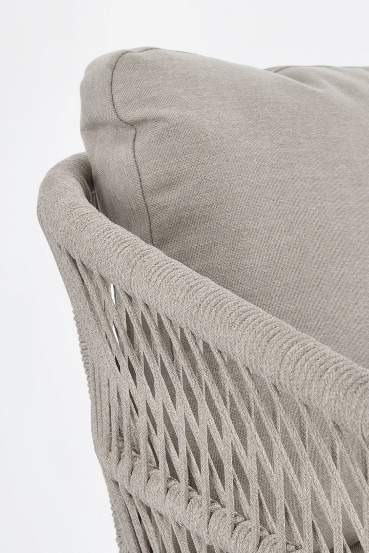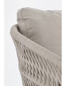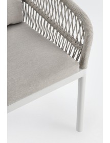 STRUTTURA IN ALLUMINIO VERNICIATA A POLVERE (POLIESTERE). INTRECCIO PER ESTERNO IN CORDA POLIESTERE. CUSCINI SFODERABILI IN TESSUTO IDROREPELLENTE 100% POLIESTERE. IMPILABILE. IMBALLO SENZA CARTONE.