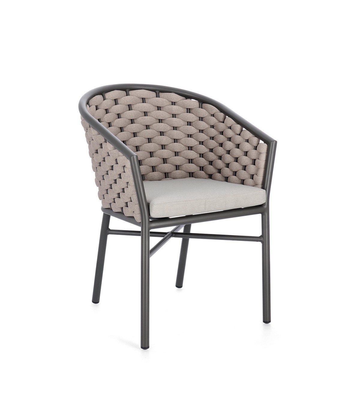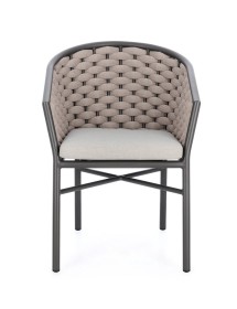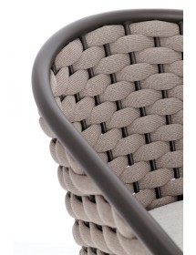 STRUTTURA IN ALLUMINIO VERNICIATA A POLVERE (POLIESTERE). INTRECCIO PER ESTERNO IN CORDA POLIESTERE IMBOTTITA IN GOMMA (POLIETILENE). CUSCINI SFODERABILI IN TESSUTO IDROREPELLENTE 100% POLIESTERE. IMPILABILE.