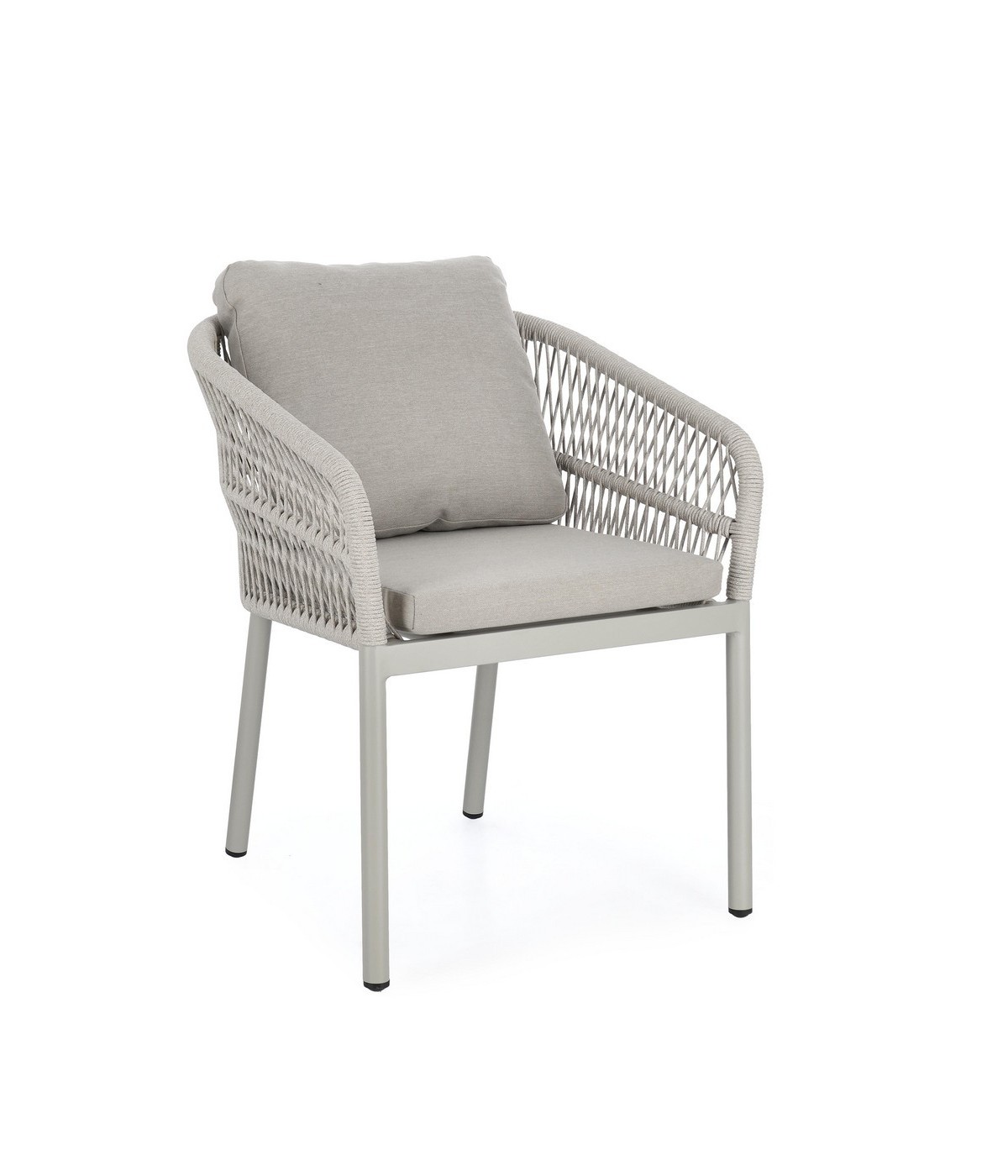 STRUTTURA IN ALLUMINIO VERNICIATA A POLVERE (POLIESTERE). INTRECCIO PER ESTERNO IN CORDA POLIESTERE. CUSCINI SFODERABILI IN TESSUTO IDROREPELLENTE 100% POLIESTERE. IMPILABILE. IMBALLO SENZA CARTONE.