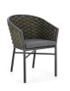 STRUTTURA IN ALLUMINIO VERNICIATA A POLVERE (POLIESTERE). INTRECCIO PER ESTERNO IN CORDA OLEFIN (POLIPROPILENE) IMBOTTITA IN GOMMA (POLIETILENE). CUSCINI SFODERABILI IN TESSUTO IDROREPELLENTE 100% POLIPROPILENE. IMPILABILE. IMBALLO SENZA CARTONE.