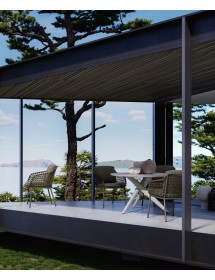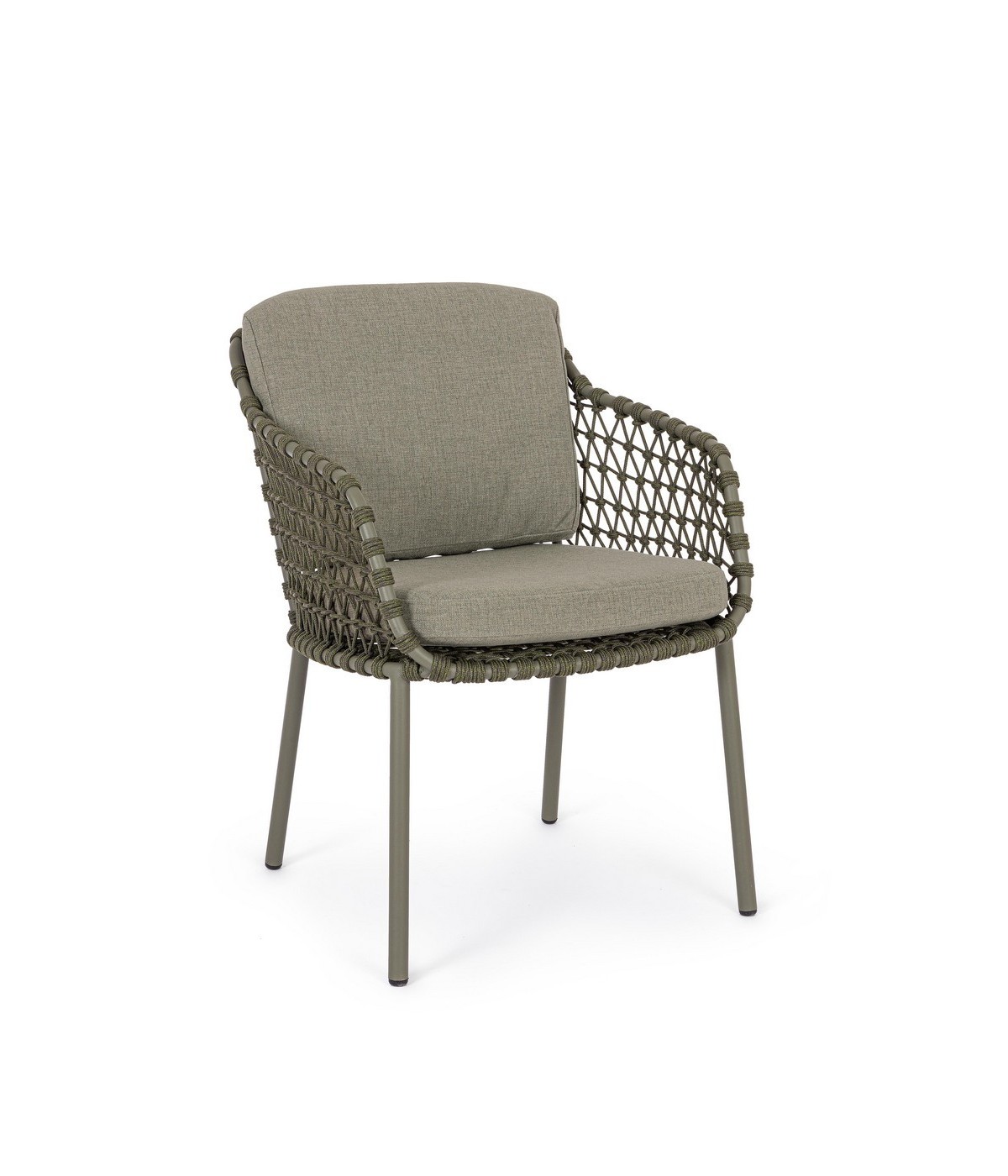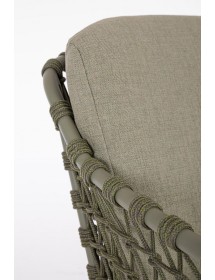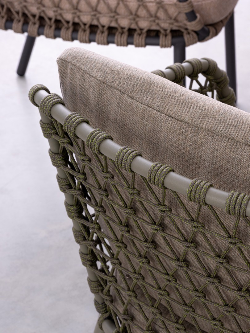 STRUTTURA IN ACCIAIO INOSSIDABILE (201). INTRECCIO PER ESTERNO IN CORDA (POLIPROPILENE). CUSCINI SFODERABILI IN TESSUTO IDROREPELLENTE SUNPROOF OLEFIN (100%POLYPROPYLENE). PER EVITARE FENOMENI DI CORROSIONE, SI SCONSIGLIA DI POSIZIONARE MOBILI CON STRUTTURA IN ACCIAIO INOSSIDABILE 201 IN LUOGHI AD ALTA SALINITÀ ( AMBIENTI MARINI ).