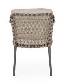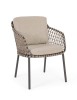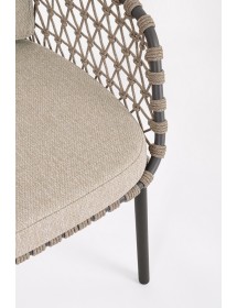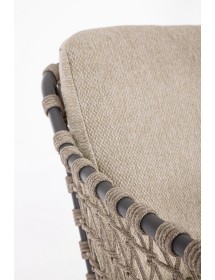 STRUTTURA IN ACCIAIO INOSSIDABILE (201). INTRECCIO PER ESTERNO IN CORDA (POLIPROPILENE). CUSCINI SFODERABILI IN TESSUTO IDROREPELLENTE SUNPROOF OLEFIN (100%POLIPROPILENE). PER EVITARE FENOMENI DI CORROSIONE, SI SCONSIGLIA DI POSIZIONARE MOBILI CON STRUTTURA IN ACCIAIO INOSSIDABILE 201 IN LUOGHI AD ALTA SALINITÀ ( AMBIENTI MARINI ).