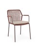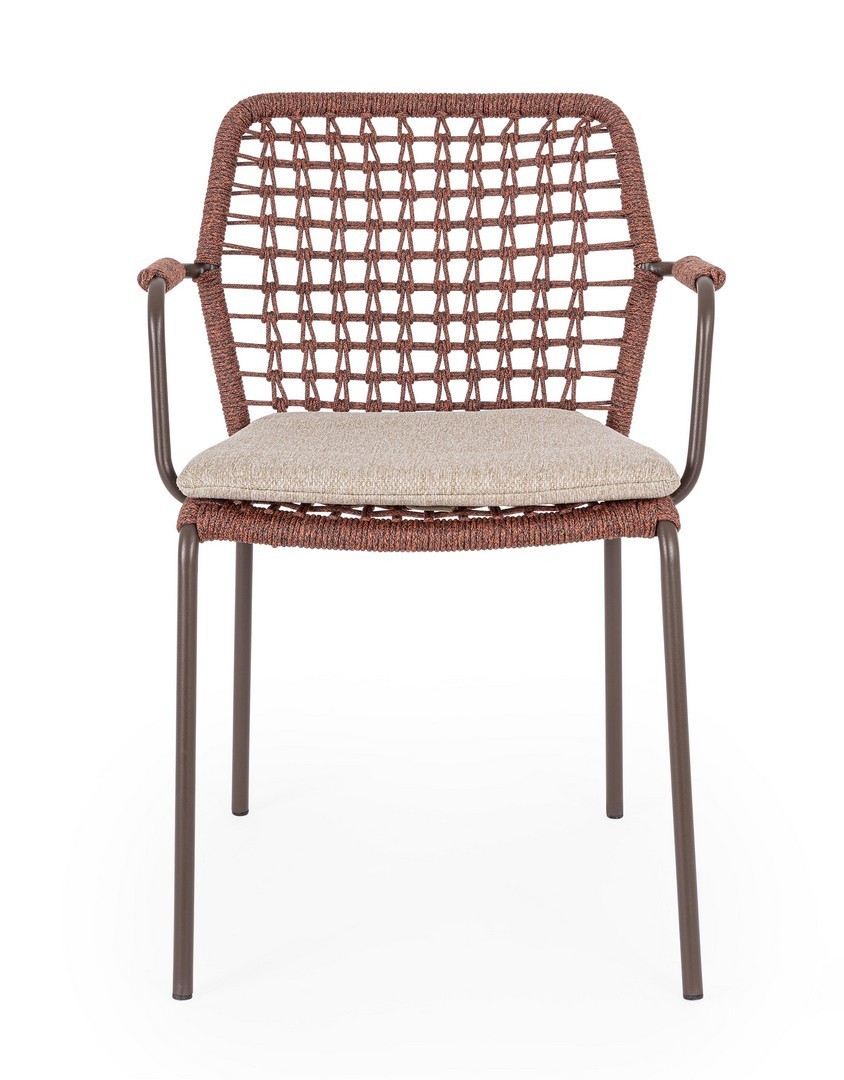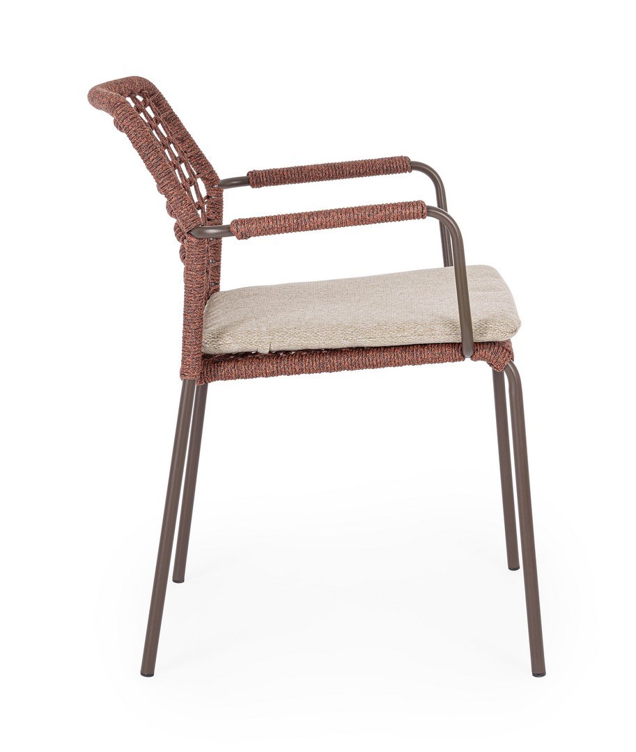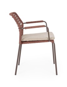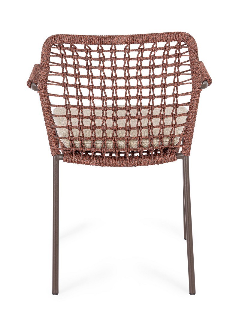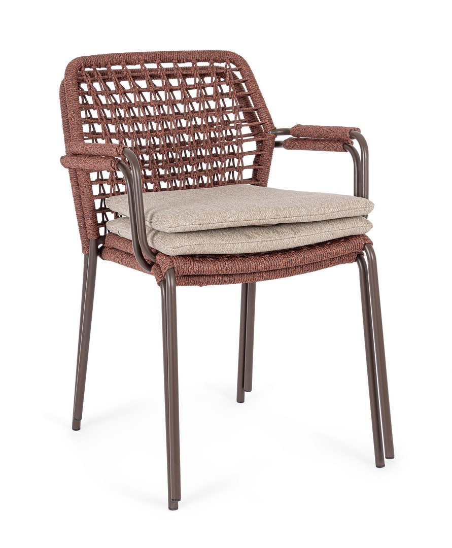 STRUTTURA IN ACCIAIO INOSSIDABILE (201). INTRECCIO PER ESTERNO IN CORDA (POLIPROPILENE). CUSCINI SFODERABILI IN TESSUTO IDROREPELLENTE SUNPROOF OLEFIN (100%POLIPROPILENE). IMPILABILE. PER EVITARE FENOMENI DI CORROSIONE, SI SCONSIGLIA DI POSIZIONARE MOBILI CON STRUTTURA IN ACCIAIO INOSSIDABILE 201 IN LUOGHI AD ALTA SALINITÀ ( AMBIENTI MARINI ).