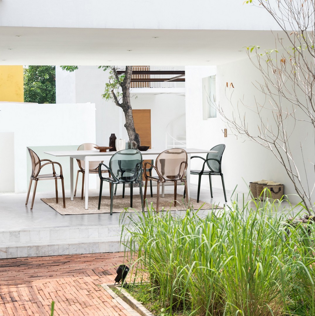 STRUTTURA IN POLICARBONATO CON FINITURA TRASPARENTE. INDICATO PER USO INTERNO ED ESTERNO. IMPILABILE.