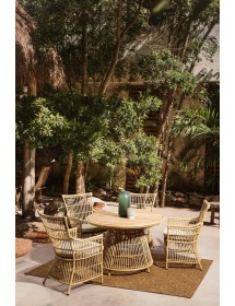 STRUTTURA IN ALLUMINIO VERNICIATO A POLVERE (POLIESTERE) CON EFFETTO RATTAN, INTRECCIO IN FIBRA SINTETICA (TONDO 10MM).CUSCINI SFODERABILI CON TESSUTO IDROREPELLENTE SUNPROOF OLEFIN (100%POLYPROPYLENE). IMBALLO SENZA CARTONE.