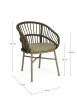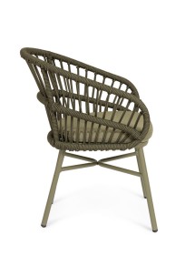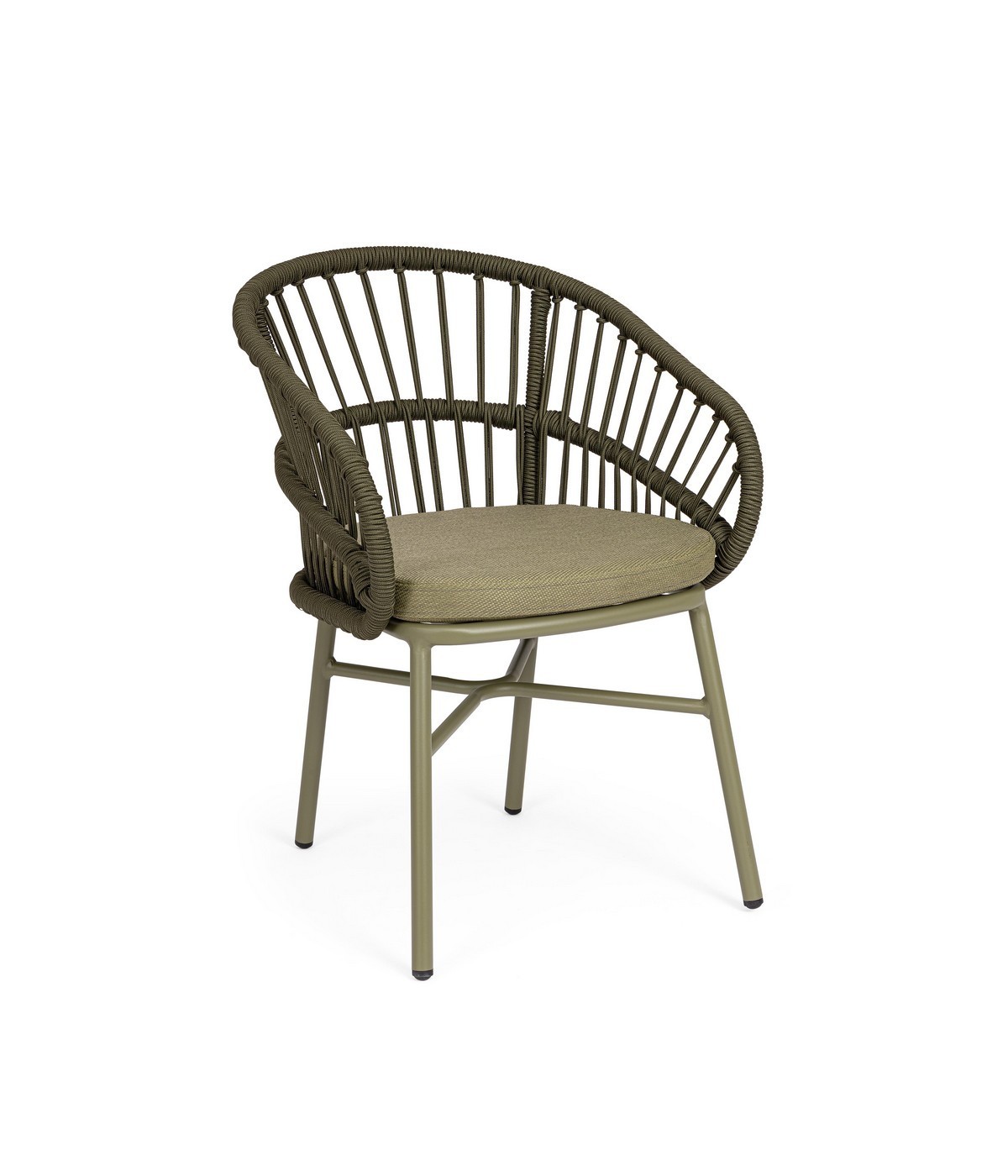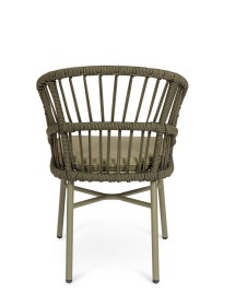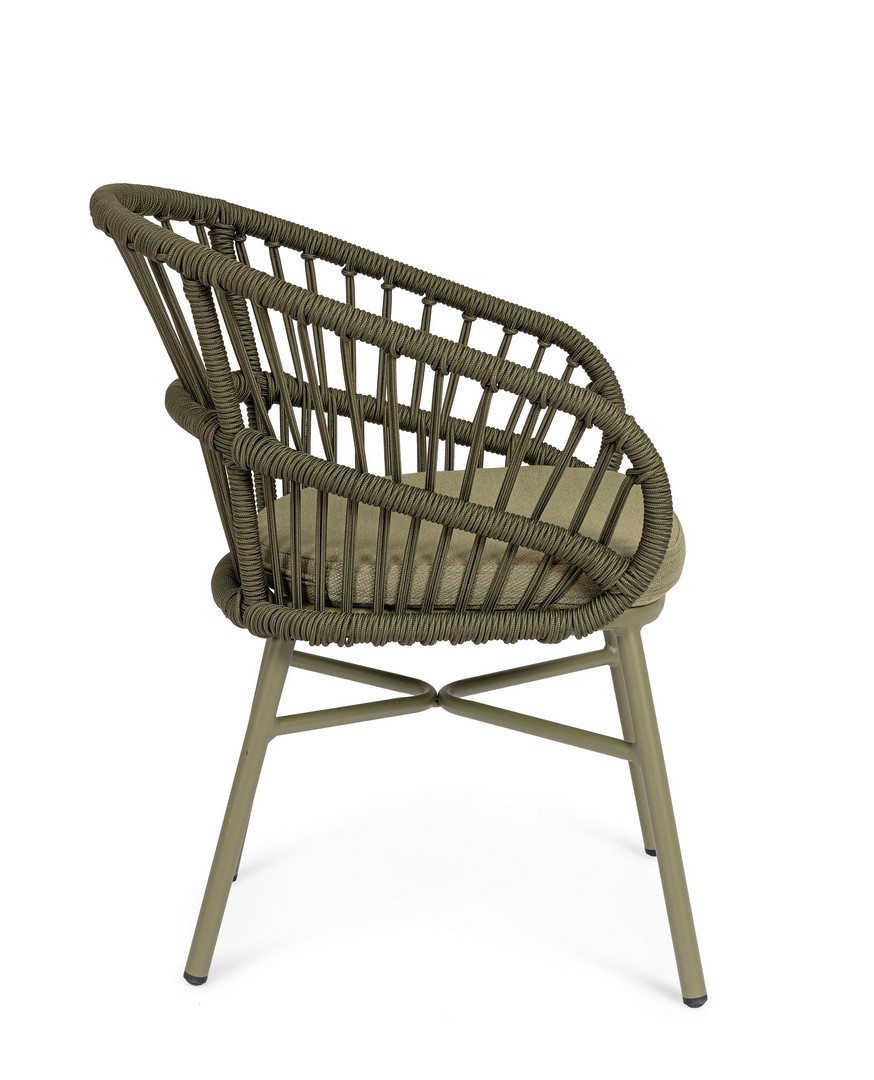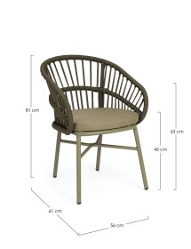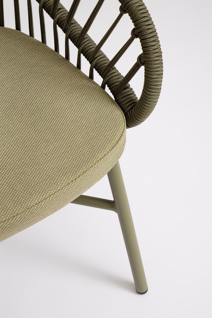 STRUTTURA IN ALLUMINIO VERNICIATA A POLVERE (POLIESTERE). INTRECCIO PER ESTERNO IN CORDA (POLIESTERE). CUSCINI SFODERABILI CON TESSUTO IDROREPELLENTE OLEFIN (100% POLIPROPILENE). IMPILABILE. IMBALLO SENZA CARTONE.