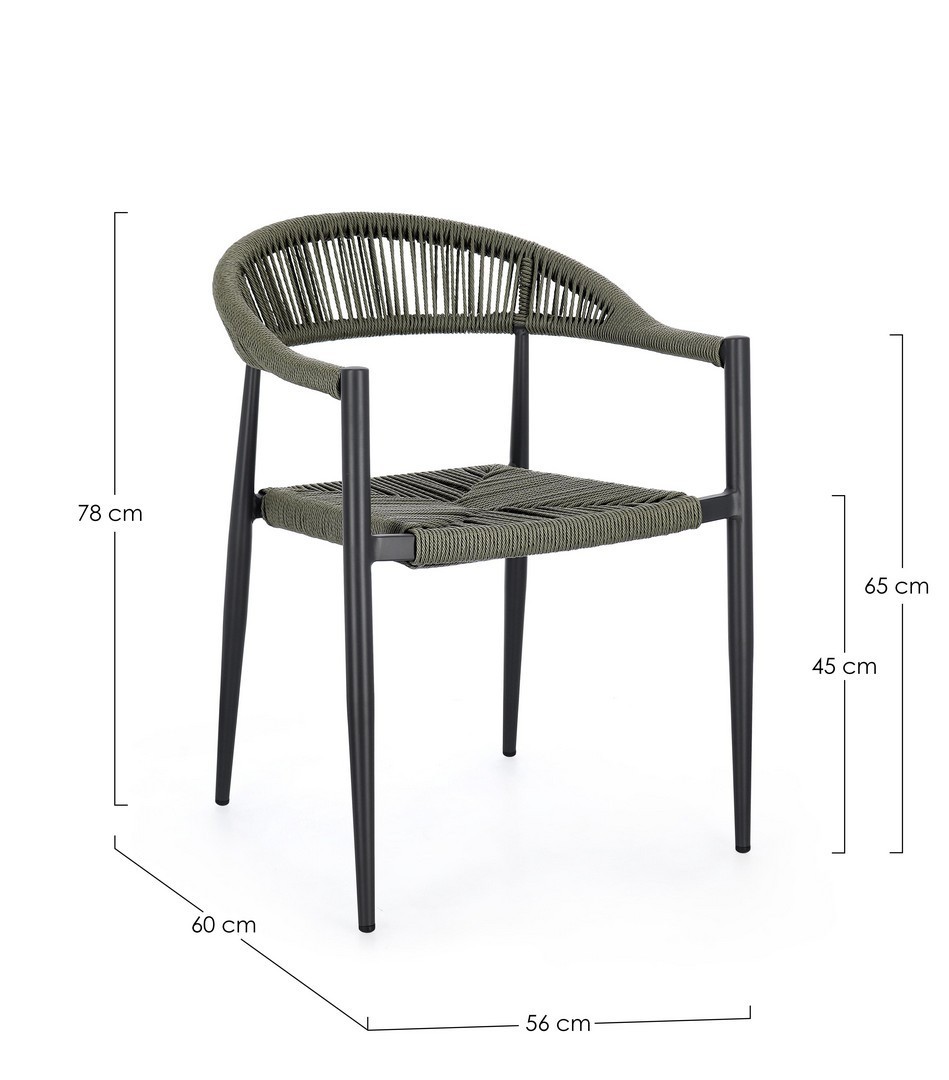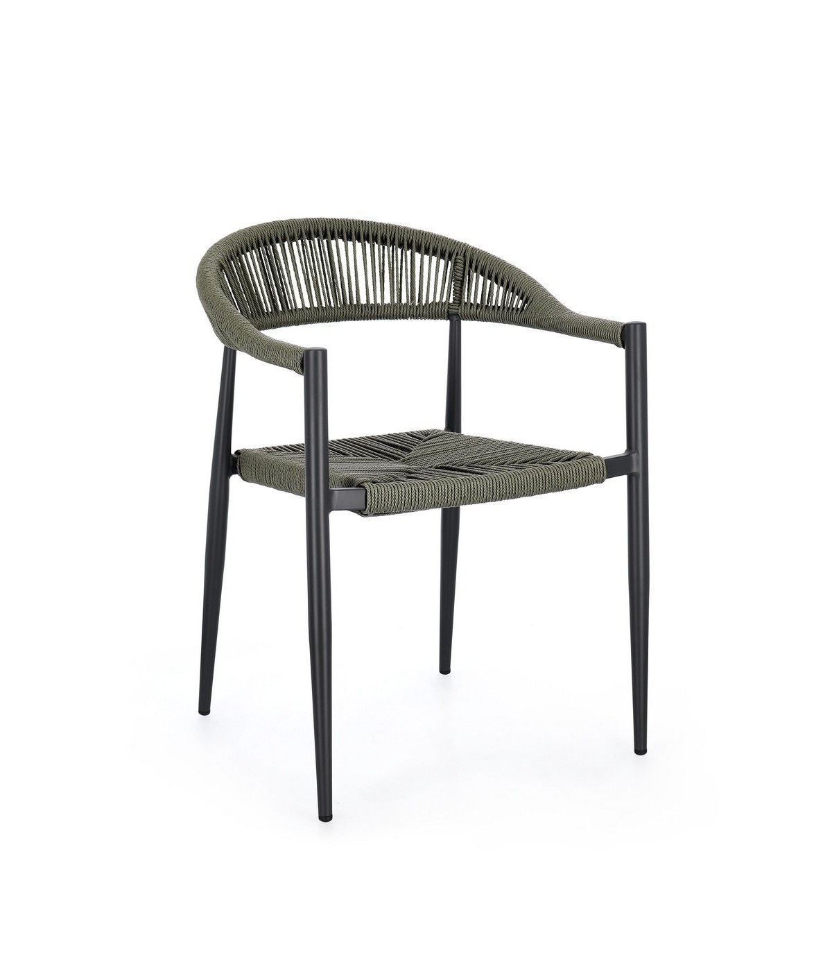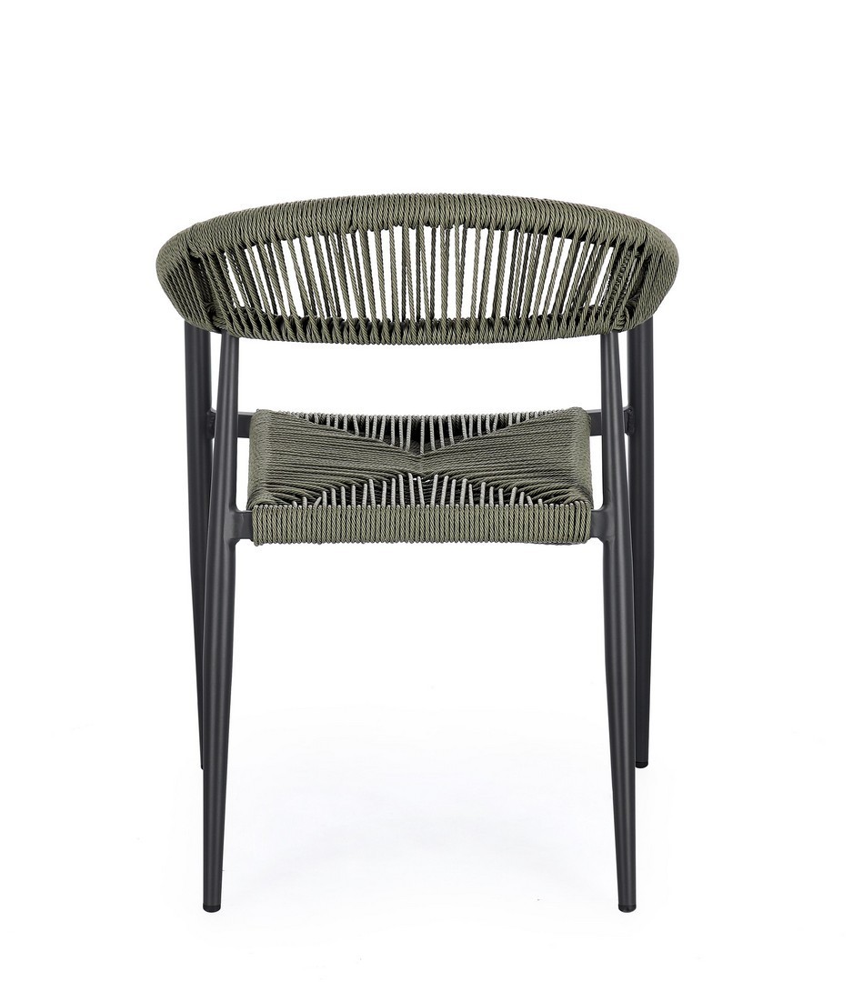 STRUTTURA IN ALLUMINIO, VERNICIATA A POLVERE (POLIESTERE), INTRECCIO IN FIBRA SINTETICA (TWISTED). IMPILABILE. IMBALLO SENZA CARTONE.
