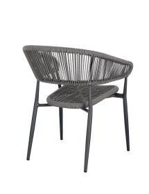 STRUTTURA IN ALLUMINIO, VERNICIATA A POLVERE (POLIESTERE), INTRECCIO IN FIBRA SINTETICA (TWISTED). IMPILABILE.