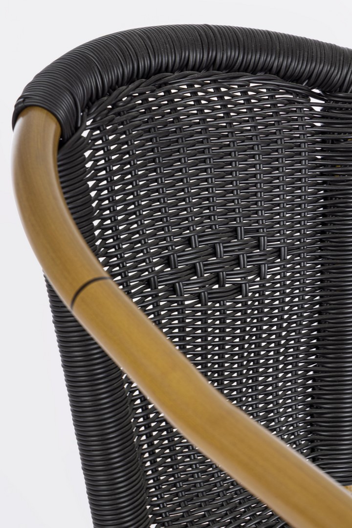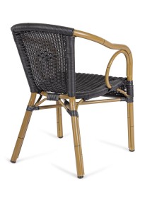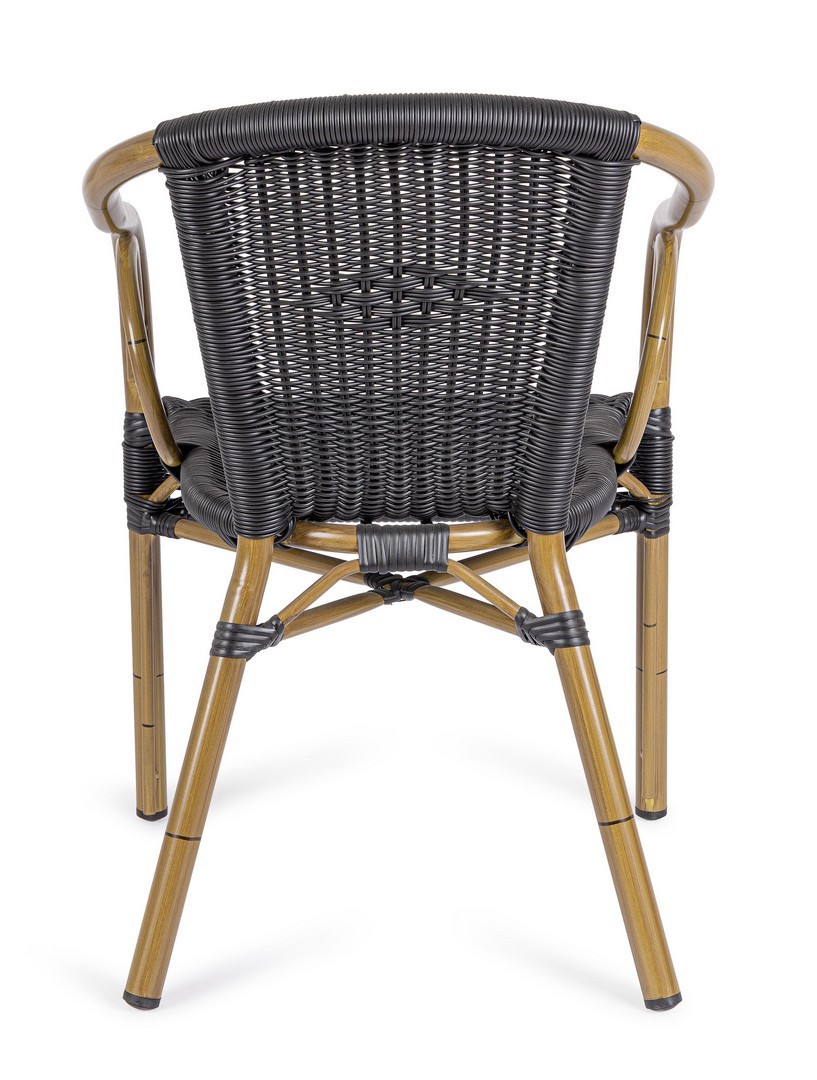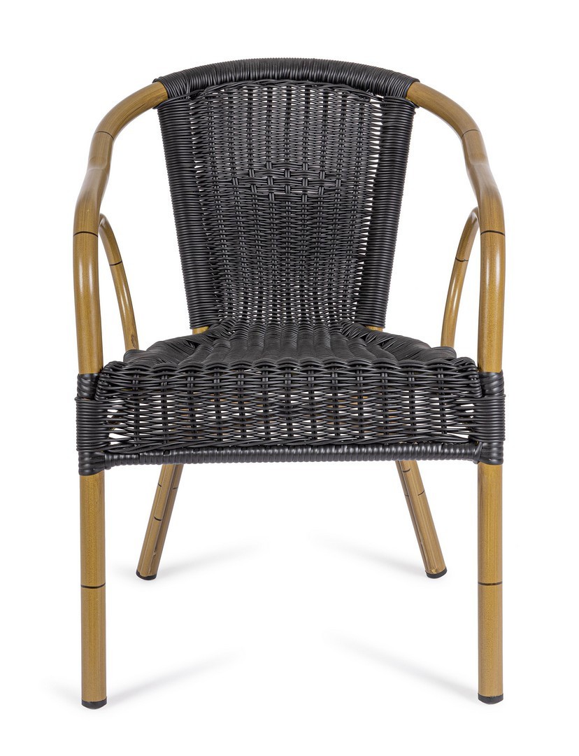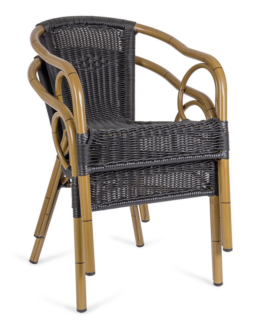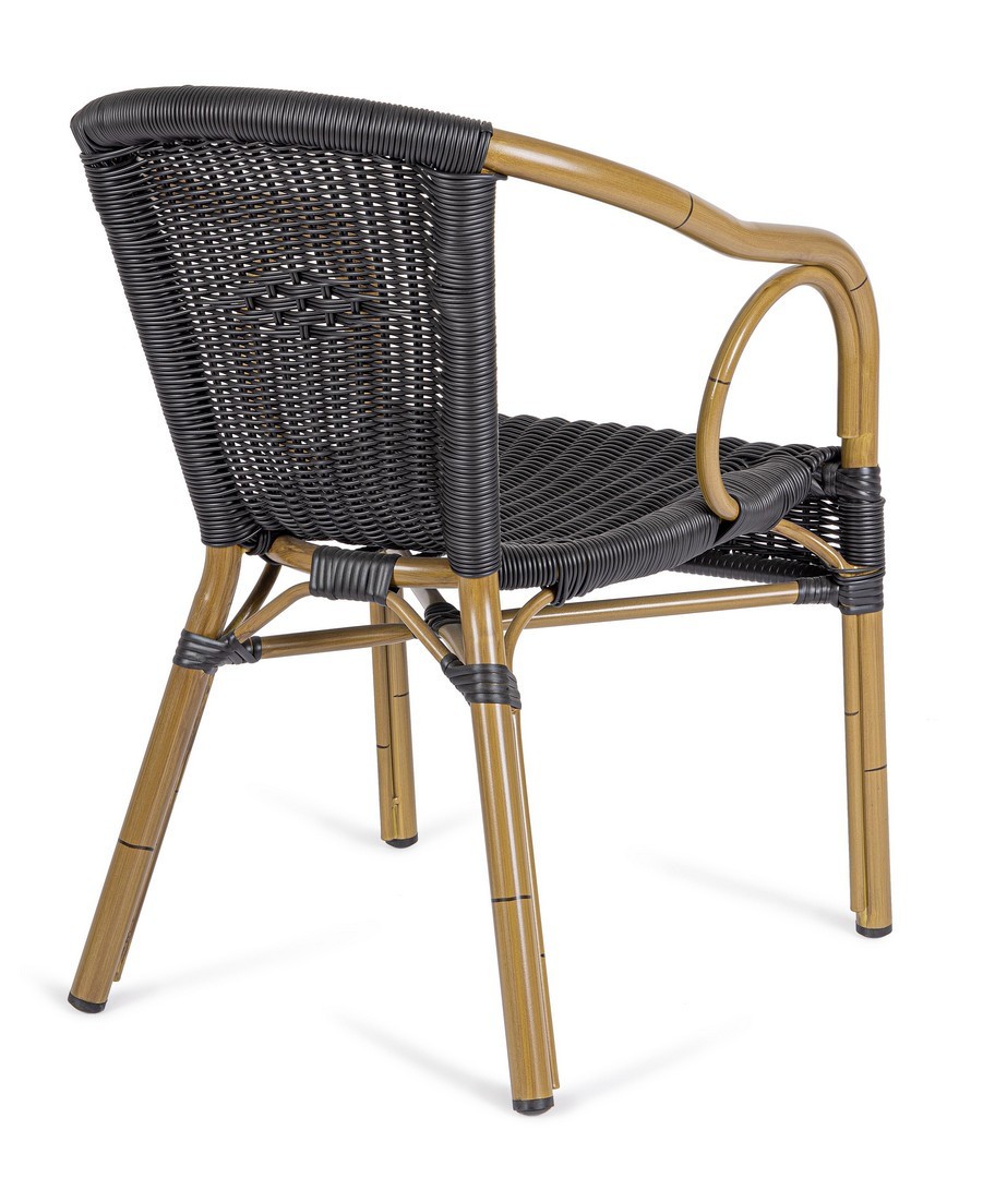STRUTTURA IN ALLUMINIO, VERNICIATA A POLVERE (POLIESTERE), INTRECCIO IN FIBRA SINTETICA (TONDA 4MM). IMPILABILE. IMBALLO SENZA CARTONE.