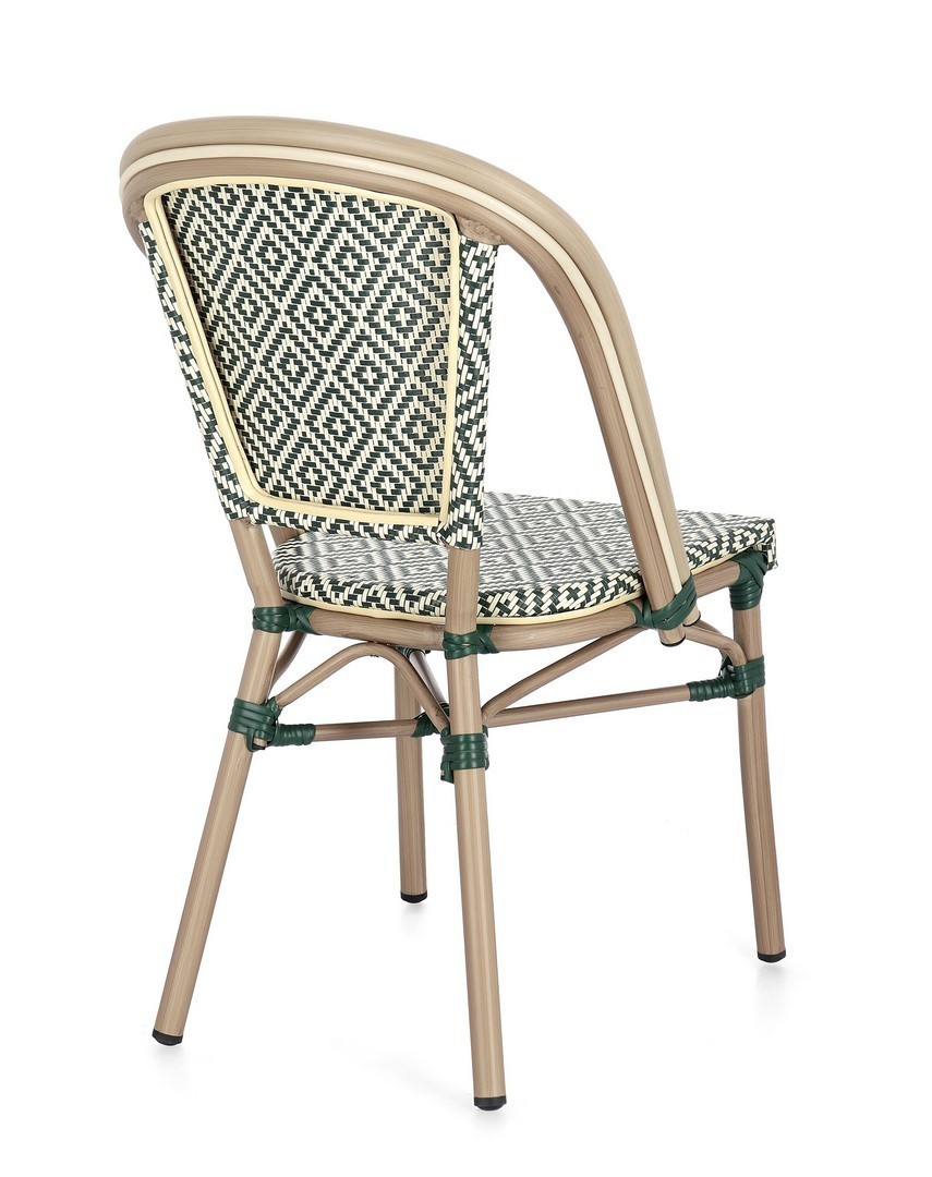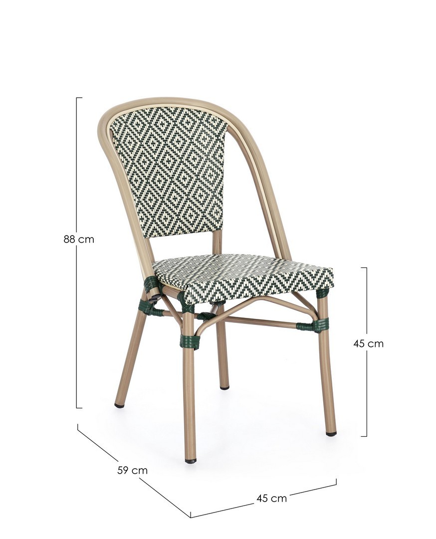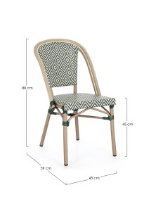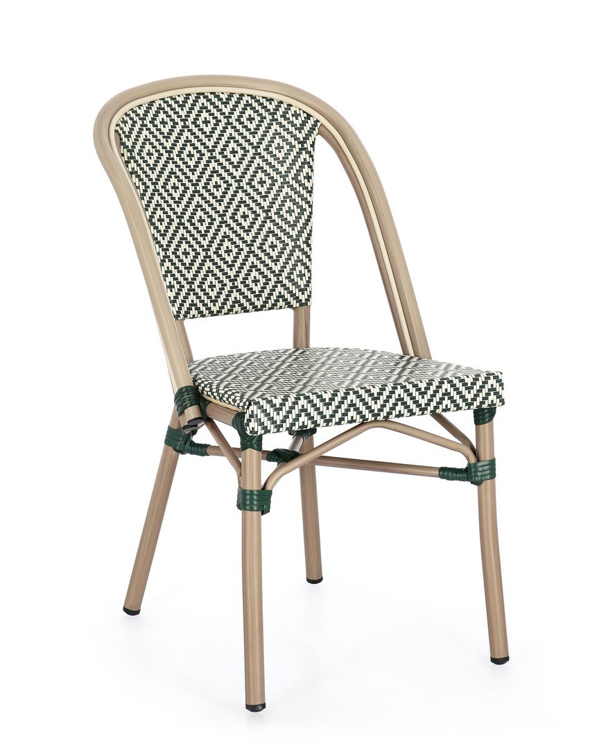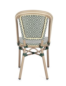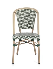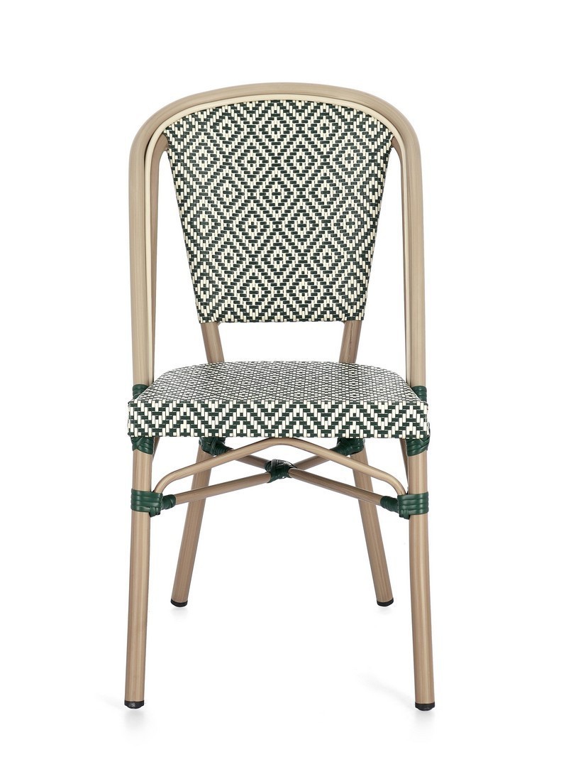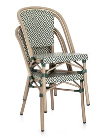STRUTTURA IN ALLUMINIO VERNICIATA A POLVERE (POLIESTERE), EFFETTO NATURALE. SEDUTA E SCHIENALE IN TEXTILENE. IMPILABILE. IMBALLO SENZA CARTONE.