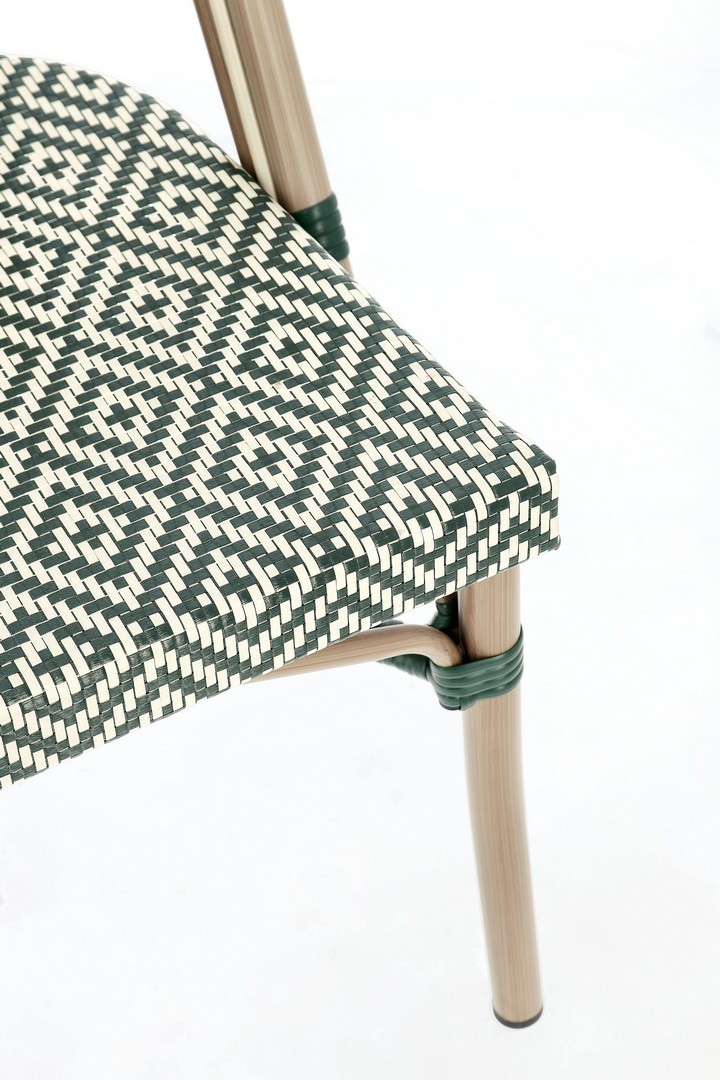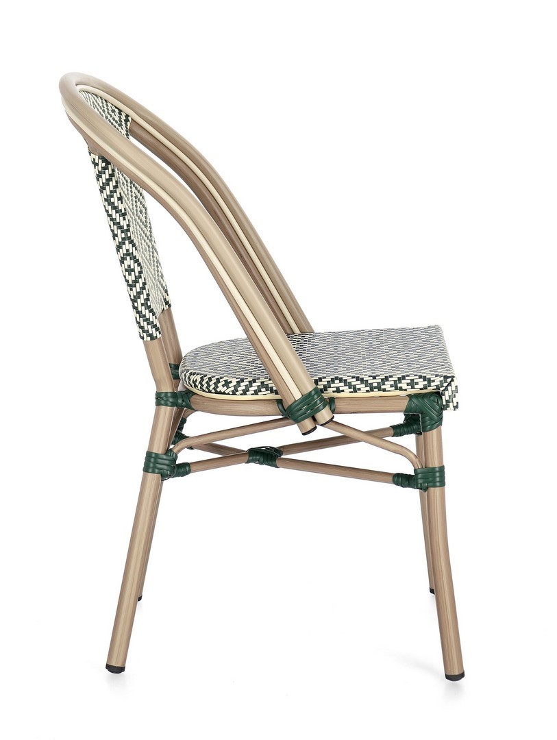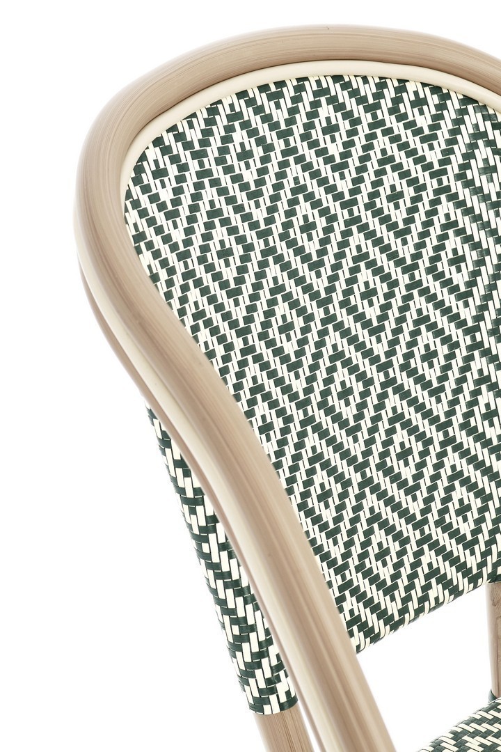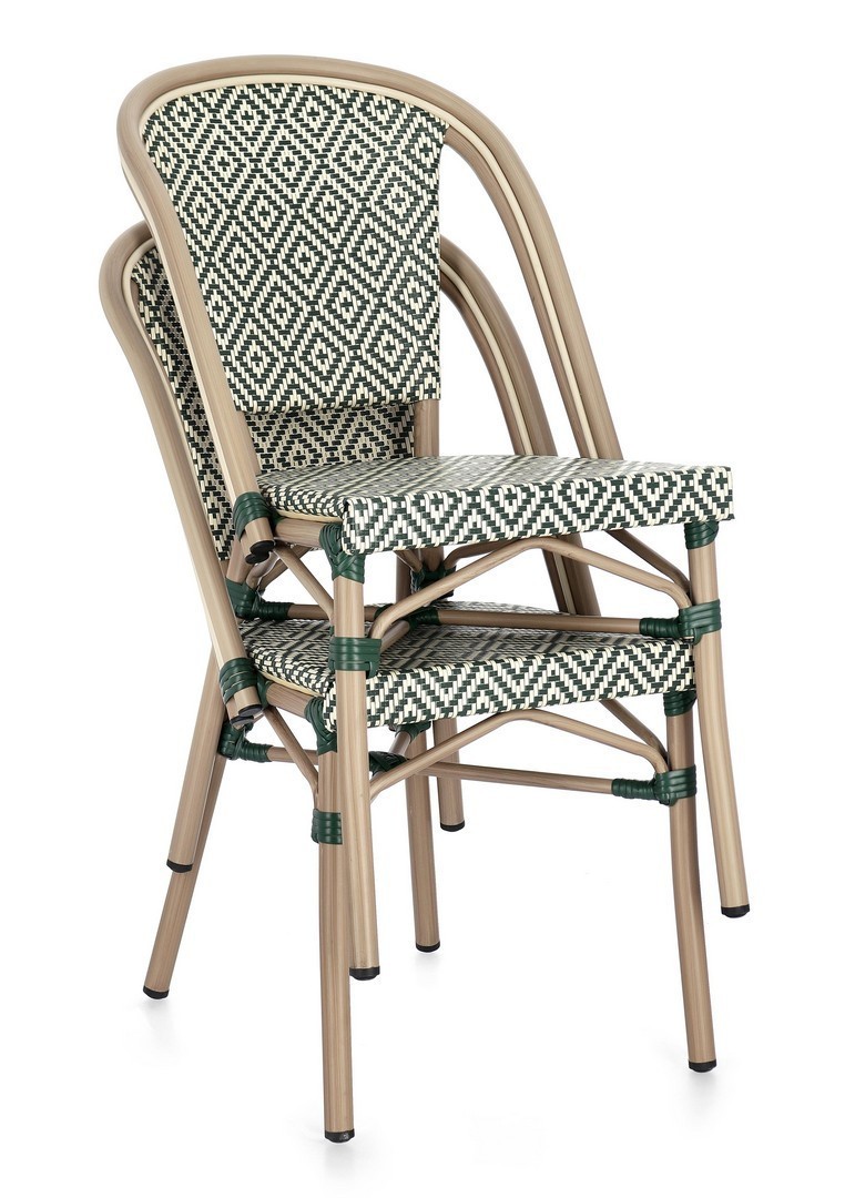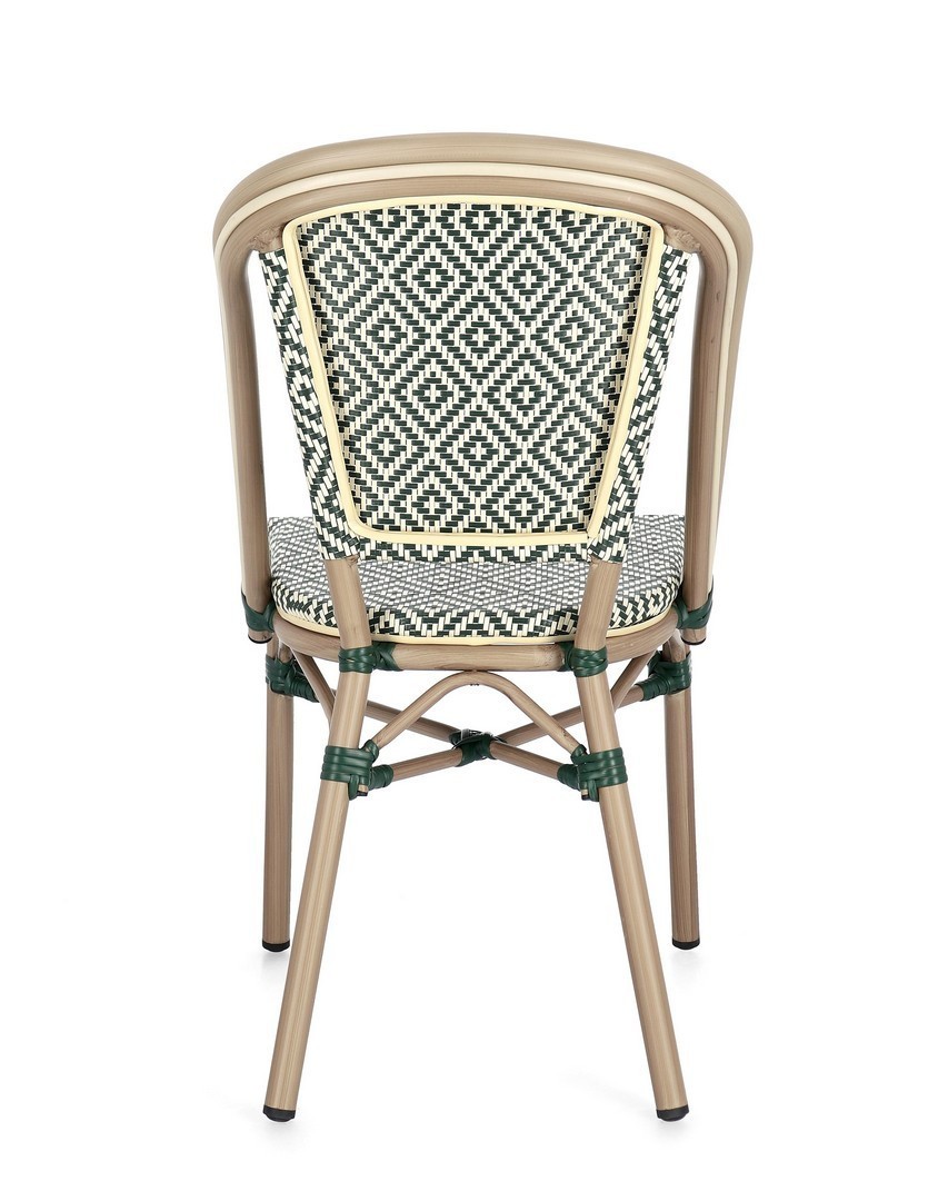 STRUTTURA IN ALLUMINIO VERNICIATA A POLVERE (POLIESTERE), EFFETTO NATURALE. SEDUTA E SCHIENALE IN TEXTILENE. IMPILABILE. IMBALLO SENZA CARTONE.
