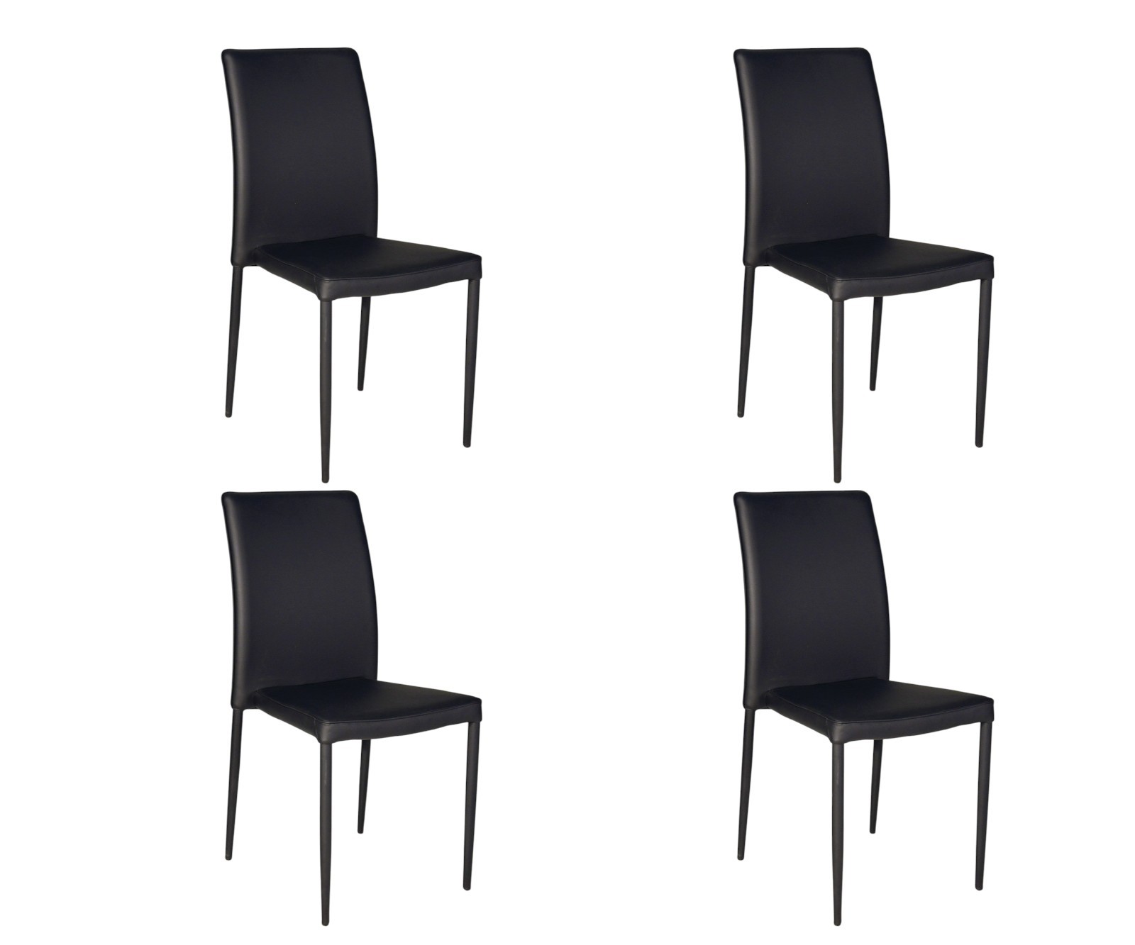 SET 4 SEDIE MODERNE IN ECOPELLE NERA CON STRUTTURA IN METALLO (711)