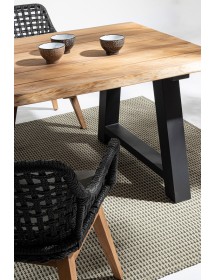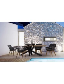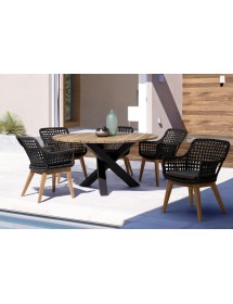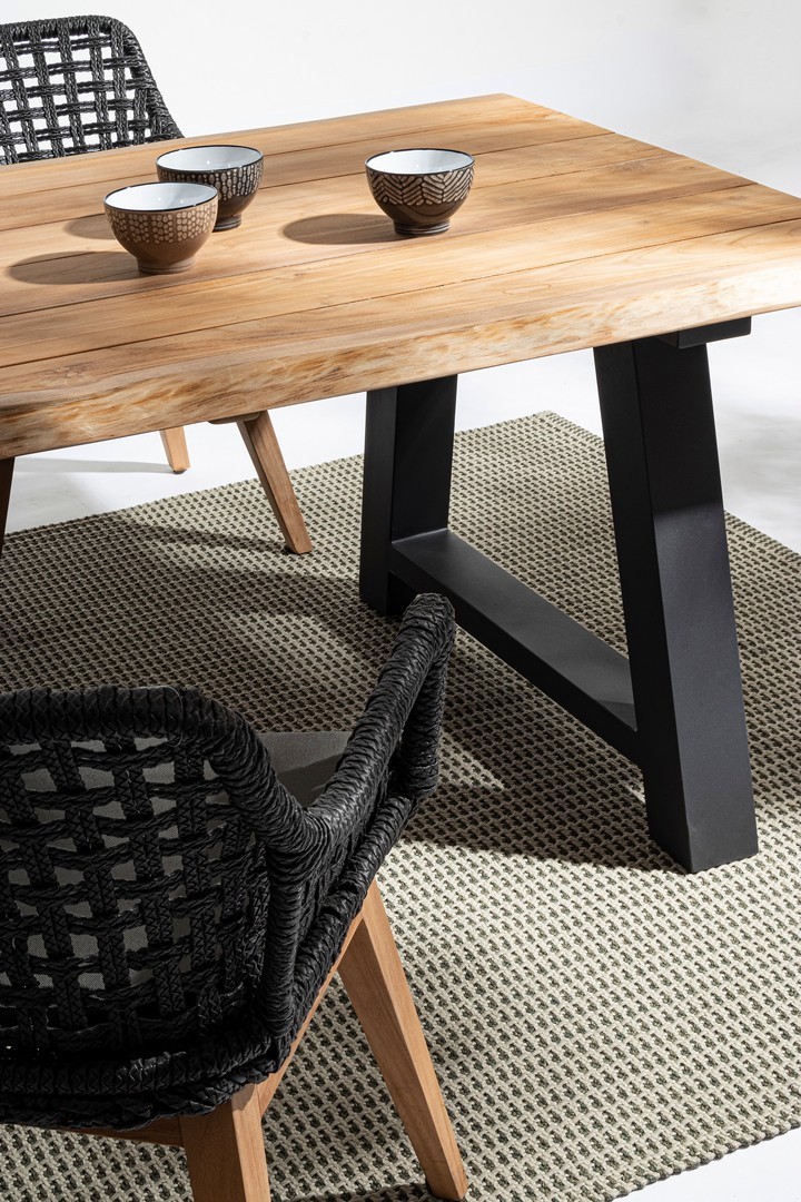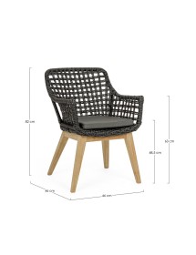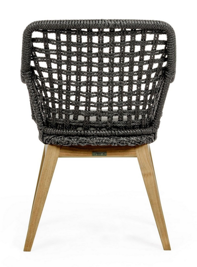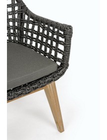 SEDUTA CON STRUTTURA IN ALLUMINIO VERNICIATA A POLVERE (POLIESTERE). INTRECCIO IN FIBRA SINTETICA VIRO CON ORIGINALE PIEGATURA A TRECCIA (EFFETTO PELLE). CUSCINO SEDUTA SFODERABILE IN TESSUTO IDROREPELLENTE SUNPROOF OLEFIN (100% POLIPROPILENE). GAMBE IN TEAK - SVLK (LEGNO CERTIFICATO PROVENIENTE DA FORESTE SOSTENIBILI). VITERIA IN ACCIAIO GALVANIZZATO. GAMBE DA ASSEMBLARE. ATTENZIONE: PRIMA DI PROCEDERE AL MONTAGGIO, ASSICURARSI CHE LA NUMERAZIONE SEDUTA-GAMBE COINCIDA.