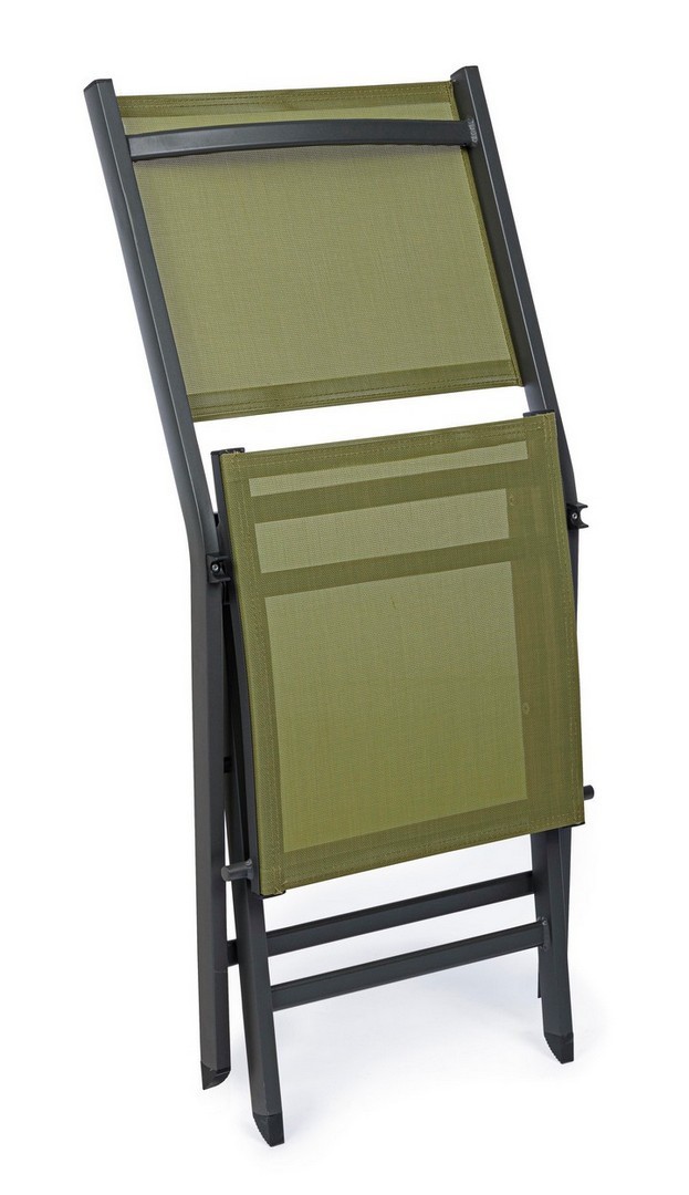 STRUTTURA IN ALLUMINIO, VERNICIATO A POLVERE (POLIESTERE). SEDUTA E SCHIENALE IN TEXTILENE. PIEGHEVOLE.