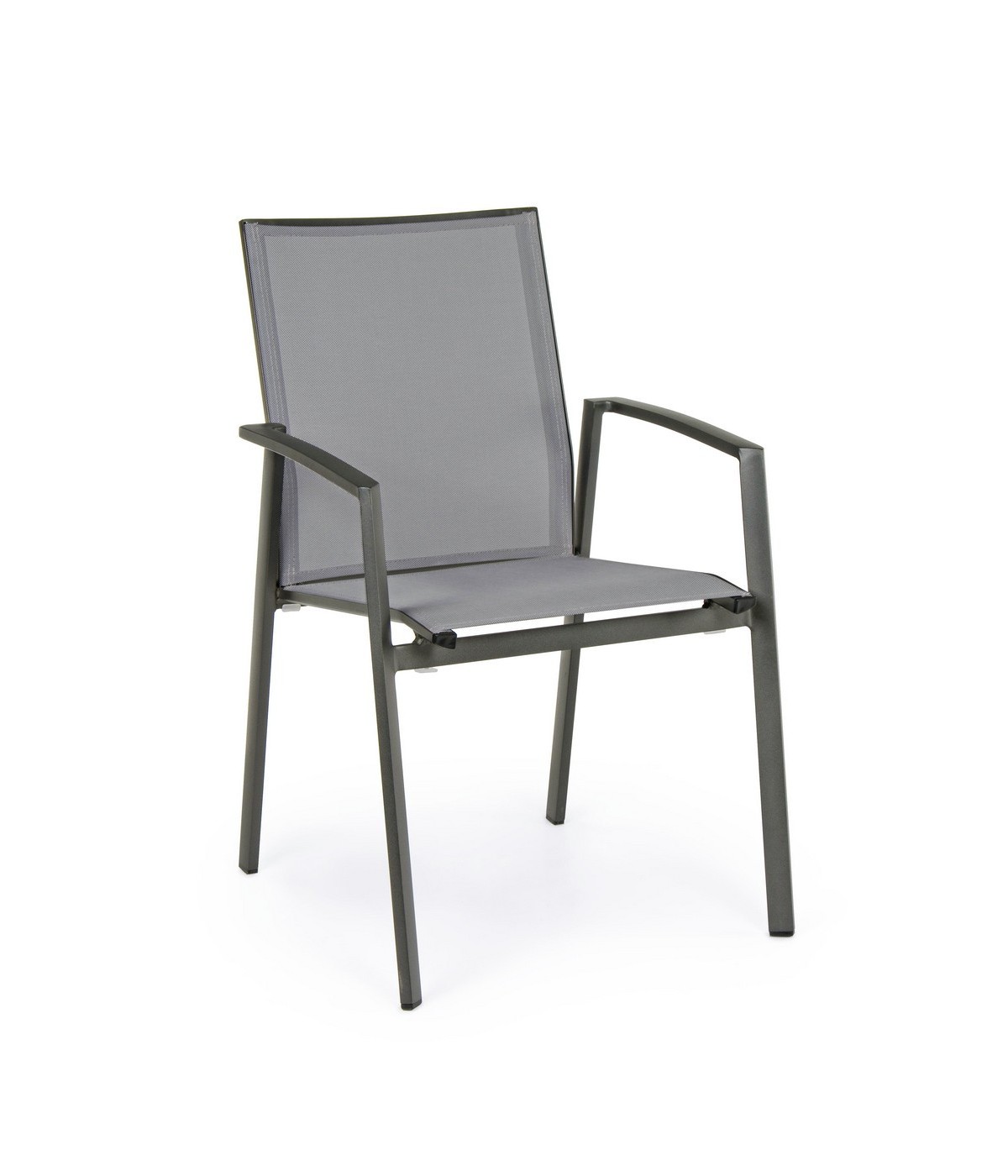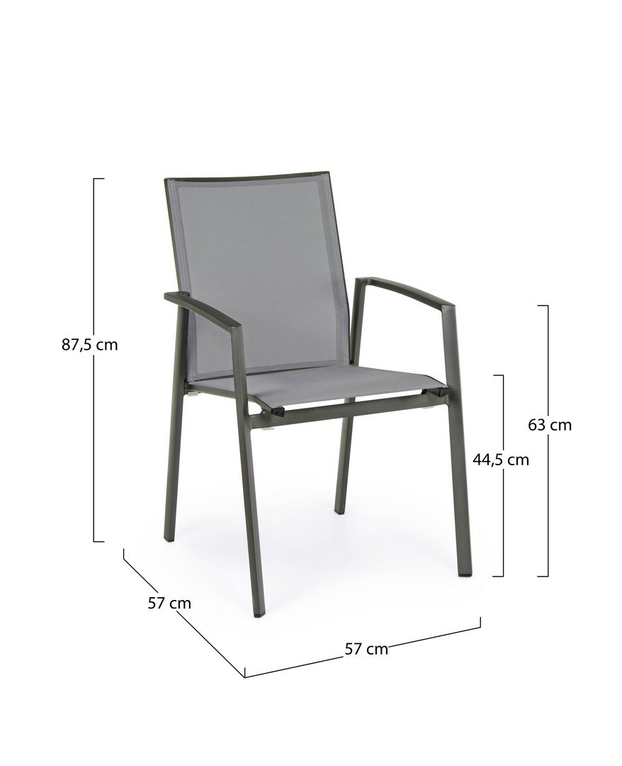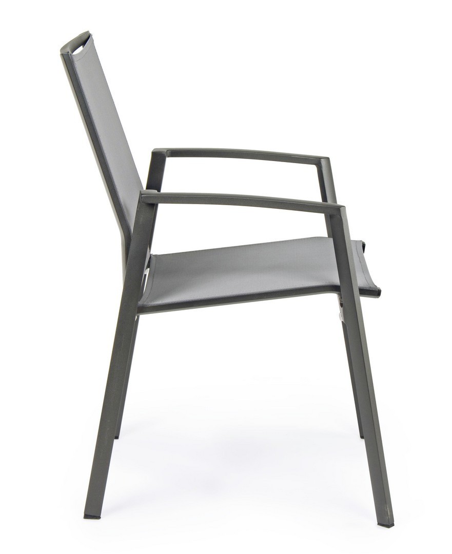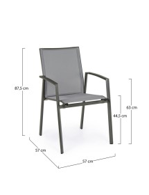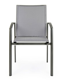 STRUTTURA IN ALLUMINIO, VERNICIATO A POLVERE (POLIESTERE). SEDUTA E SCHIENALE RIVESTITI IN TEXTILENE PHIFER 1X1. IMPILABILE. IMBALLO SENZA CARTONE.
