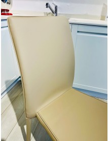La struttura della sedia è in alluminio ed è rivestita in ecopelle nocciola.