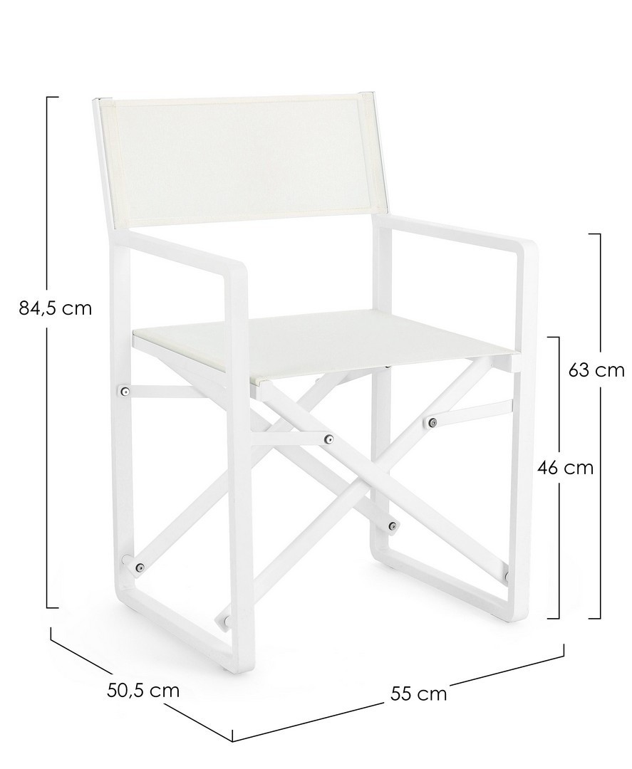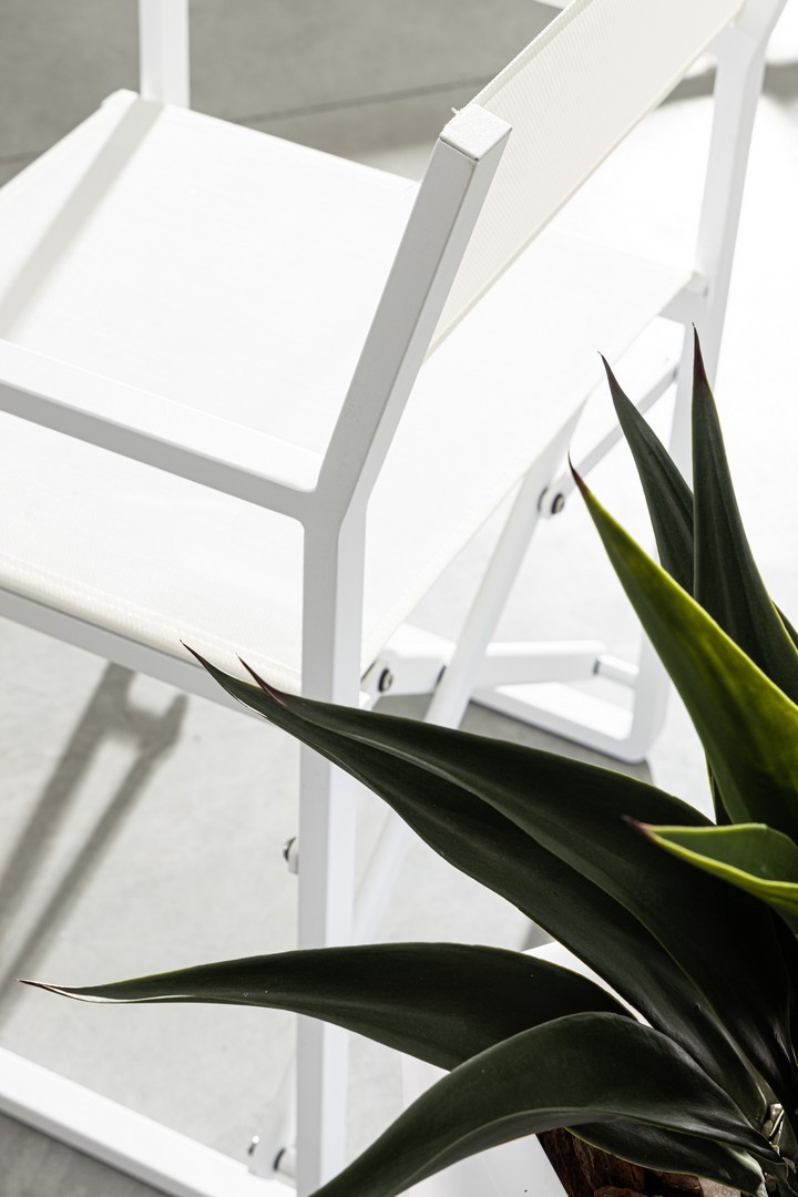 STRUTTURA IN ALLUMINIO, VERNICIATO A POLVERE (POLIESTERE). SEDUTA E SCHIENALE IN TEXTILENE 1X1. VITERIA IN ACCIAIO INOSSIDABILE. PIEGHEVOLE.