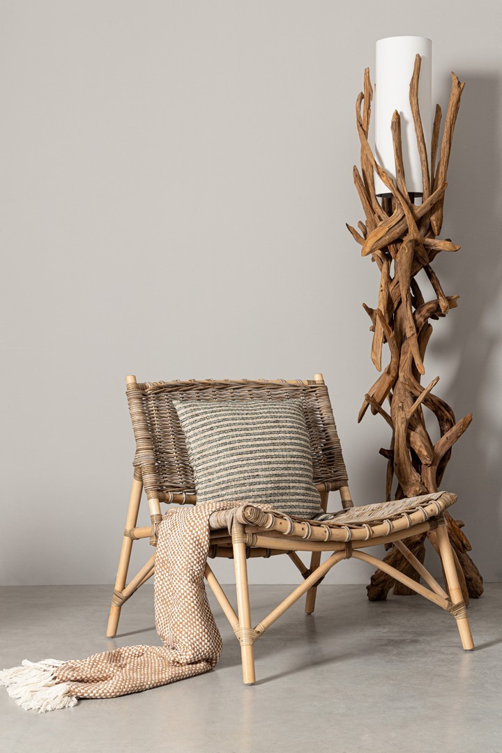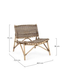 STRUTTURA IN RATTAN. INTRECCIO IN KUBU. FINITURA A BASE DI NITROCELLULOSA. SI RACCOMANDA DI NON ESPORRE L'ARTICOLO ALLA LUCE DIRETTA DEL SOLE E ALLE INTEMPERIE. IMBALLO SENZA CARTONE.