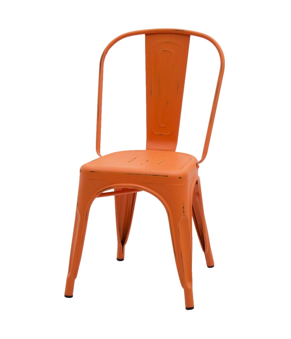 SET 6 Sedie Stile INDUSTRY in Metallo arancione anticato l.45 h.85 P.50 HS.46