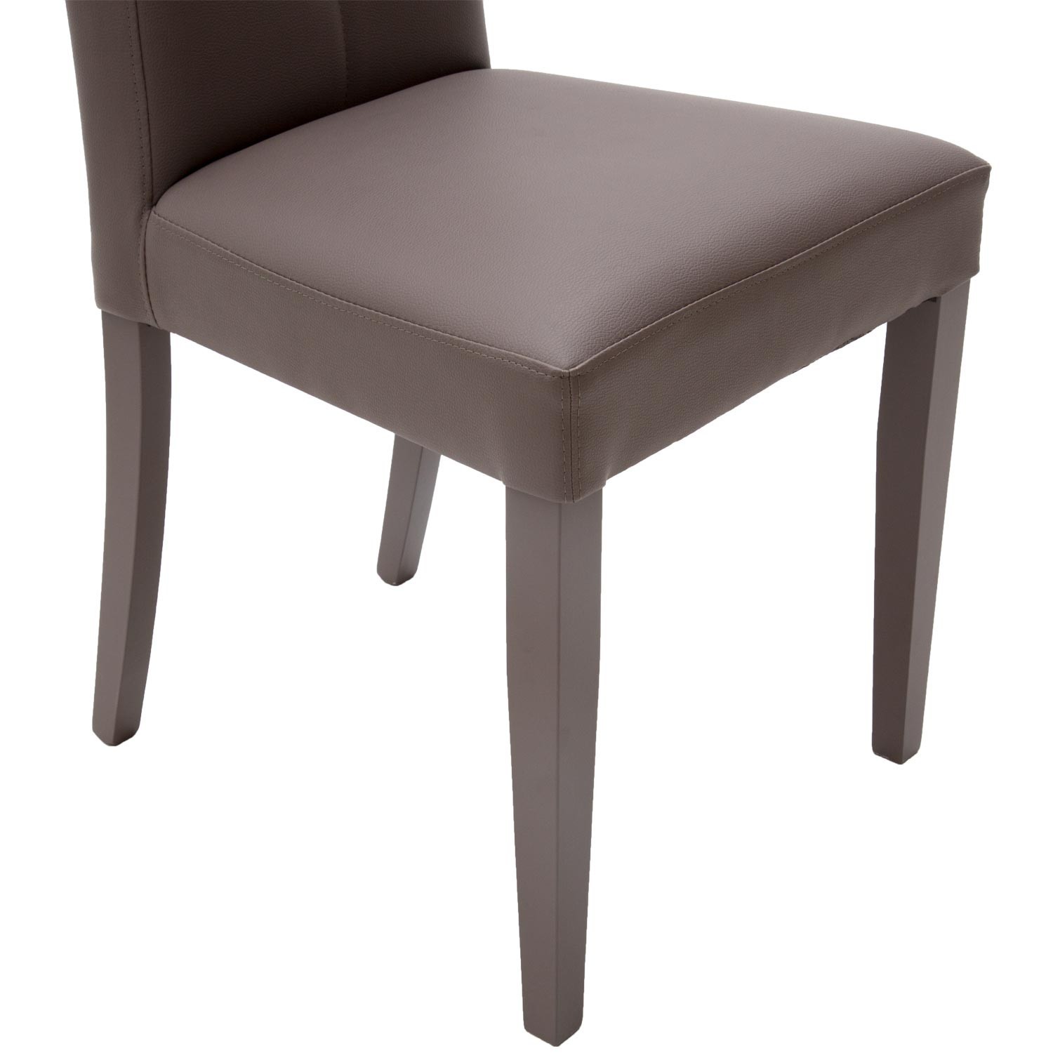 seduta imbottita in ecopelle tortora, schienale imbottito e gambe color tortora in legno, i due bottoni sullo schienale le rendono uno stile elegante.