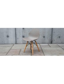 Sedia sagomata con gambe in legno tinta naturale come foto,incrocio a ragnatela di acciaio verniciato nero tra le 4 gambe