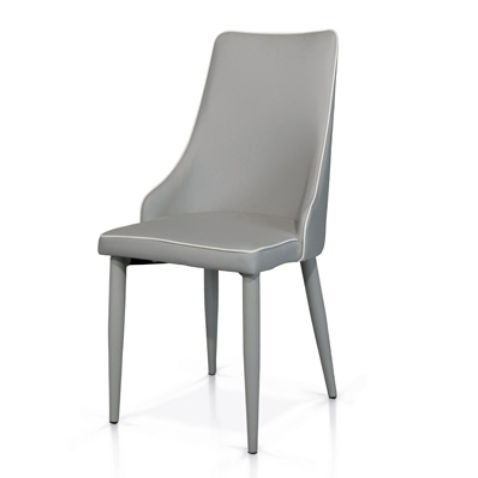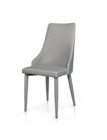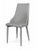 Sedia con gambe affusolate in ecopelle grigia.