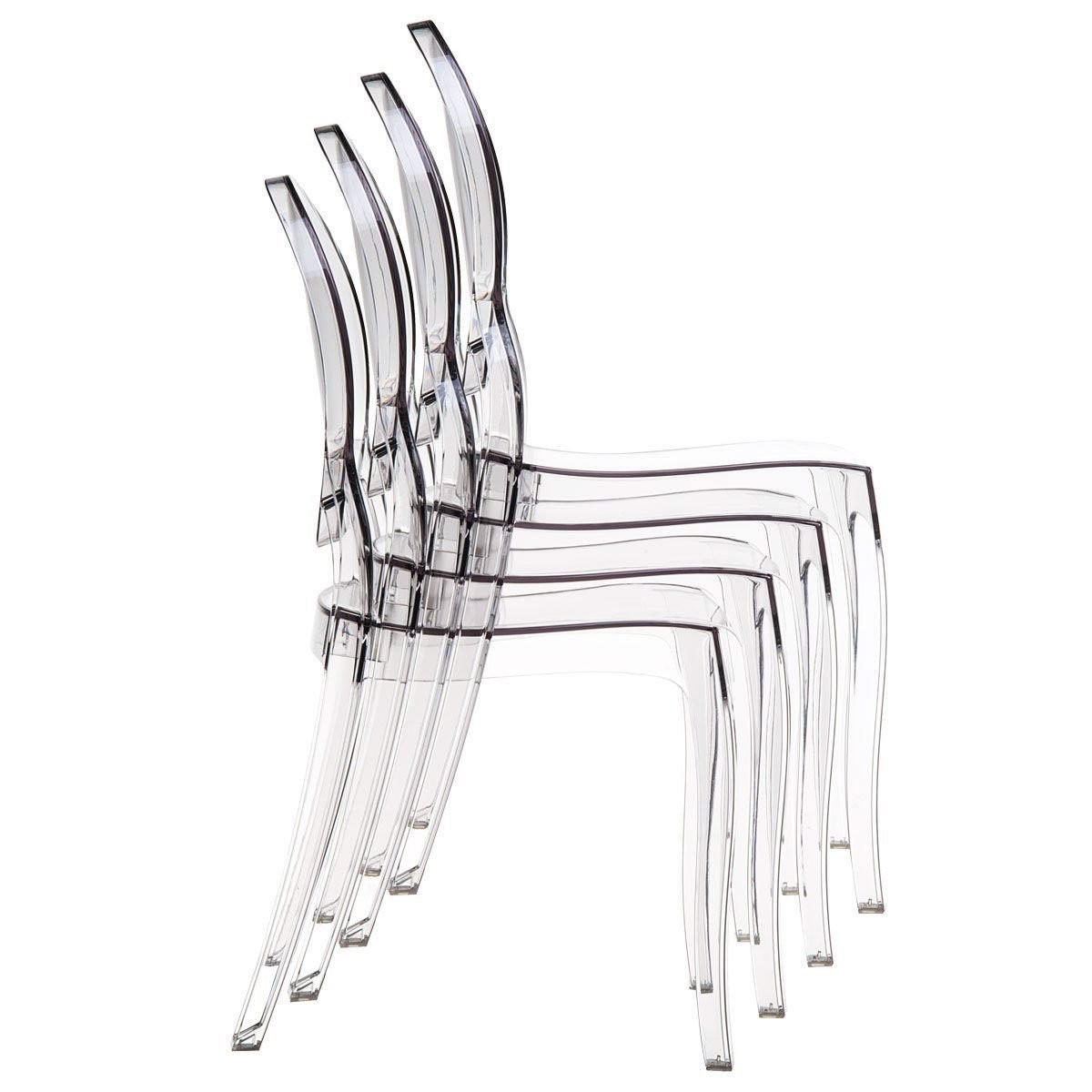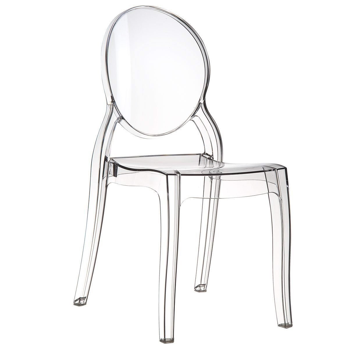 Sedia in polipropilene trasparente dalle linee sagomate ideale per chi ama arredare con stile la casa e allo stesso tempo versatile da posizionare in qualsiasi stanza .Sedia con seduta sagomata e schienale ovale che garantiscono un' esperienza di seduta confortevole e rilassante. Complemento di arredo adatto nella zona del soggiorno sia per l' uso interno della abitazione e per i spazi all'aperto in giardino.