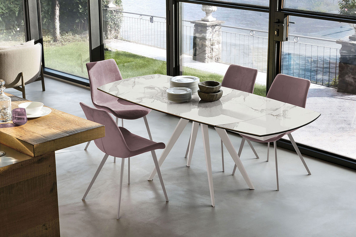 Malaga è una sedia che offre una solida struttura a quattro gambe in metallo, invece la seduta e lo schienale seguono perfettamente in modo armonioso la linea del corpo .La comoda imbottitura e le forme arrotondate assicurano una piacevole serata con gli ospiti, donando funzionalità e versatilità a qualsiasi ambiente della casa.