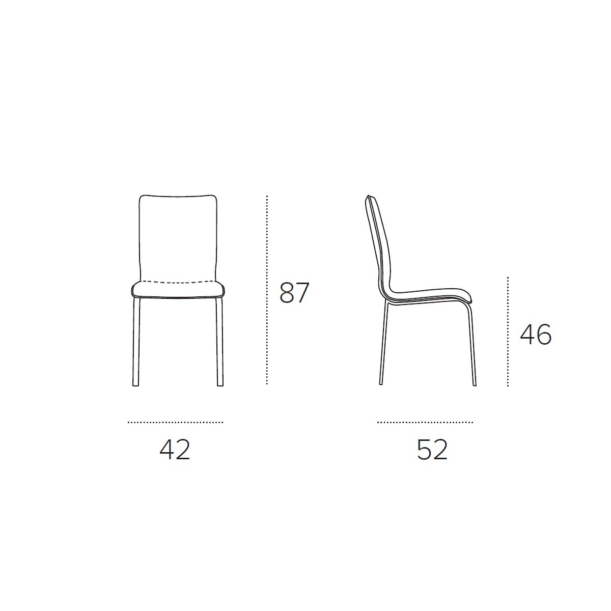 Larghezza 42 cm - Profondità 52 - cm Altezza seduta 46 - cm Altezza totale 87 cm