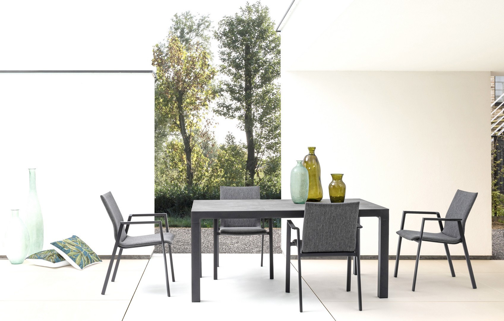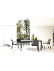 STRUTTURA IN ALLUMINIO VERNICIATA A POLVERE (POLIESTERE). RIVESTIMENTO CON TESSUTO IDROREPELLENTE MISTO (70% TEXTILENE, 30% OLEFIN). IMBOTTITURA PER ESTERNO FAST DRY FOAM. IMPILABILE.