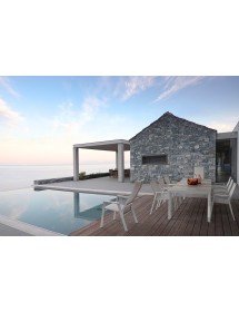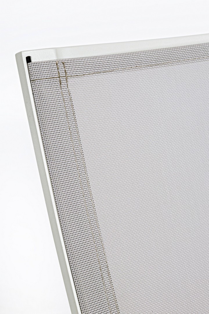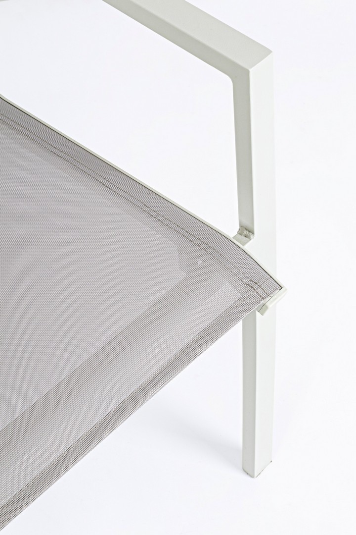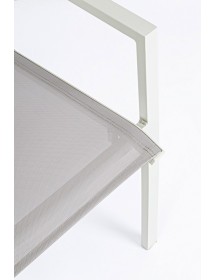 STRUTTURA IN ALLUMINIO VERNICIATA A POLVERE (POLIESTERE). RIVESTIMENTO IN TEXTILENE 1X1. IMPILABILE. IMBALLO SENZA CARTONE.