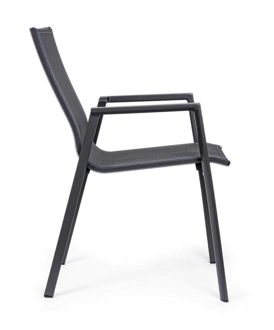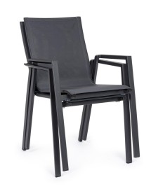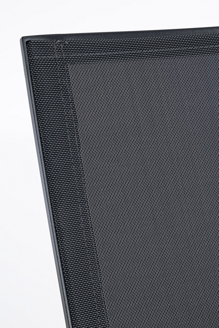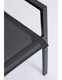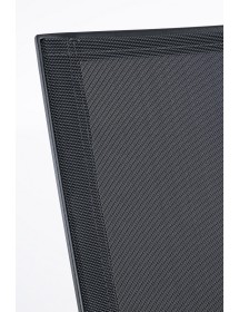 STRUTTURA IN ALLUMINIO VERNICIATA A POLVERE (POLIESTERE). RIVESTIMENTO IN TEXTILENE 1X1. IMPILABILE.